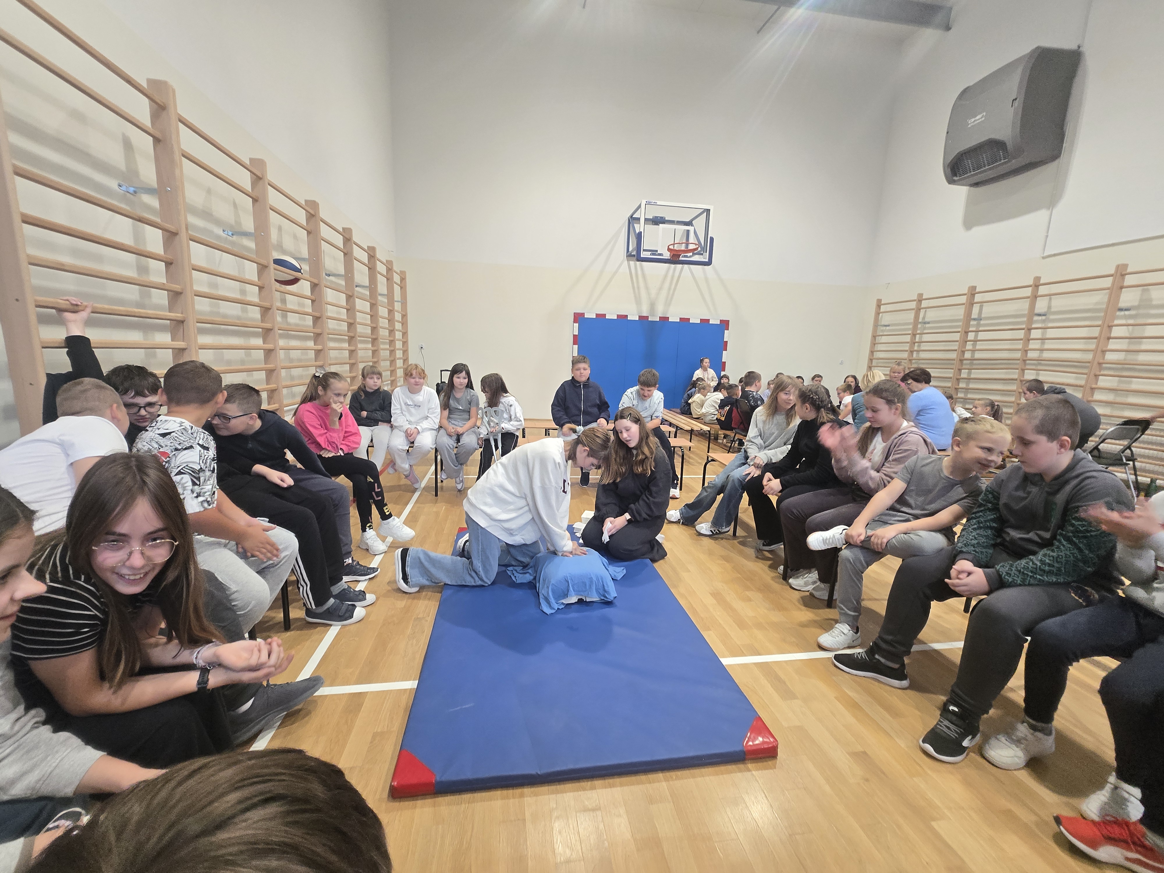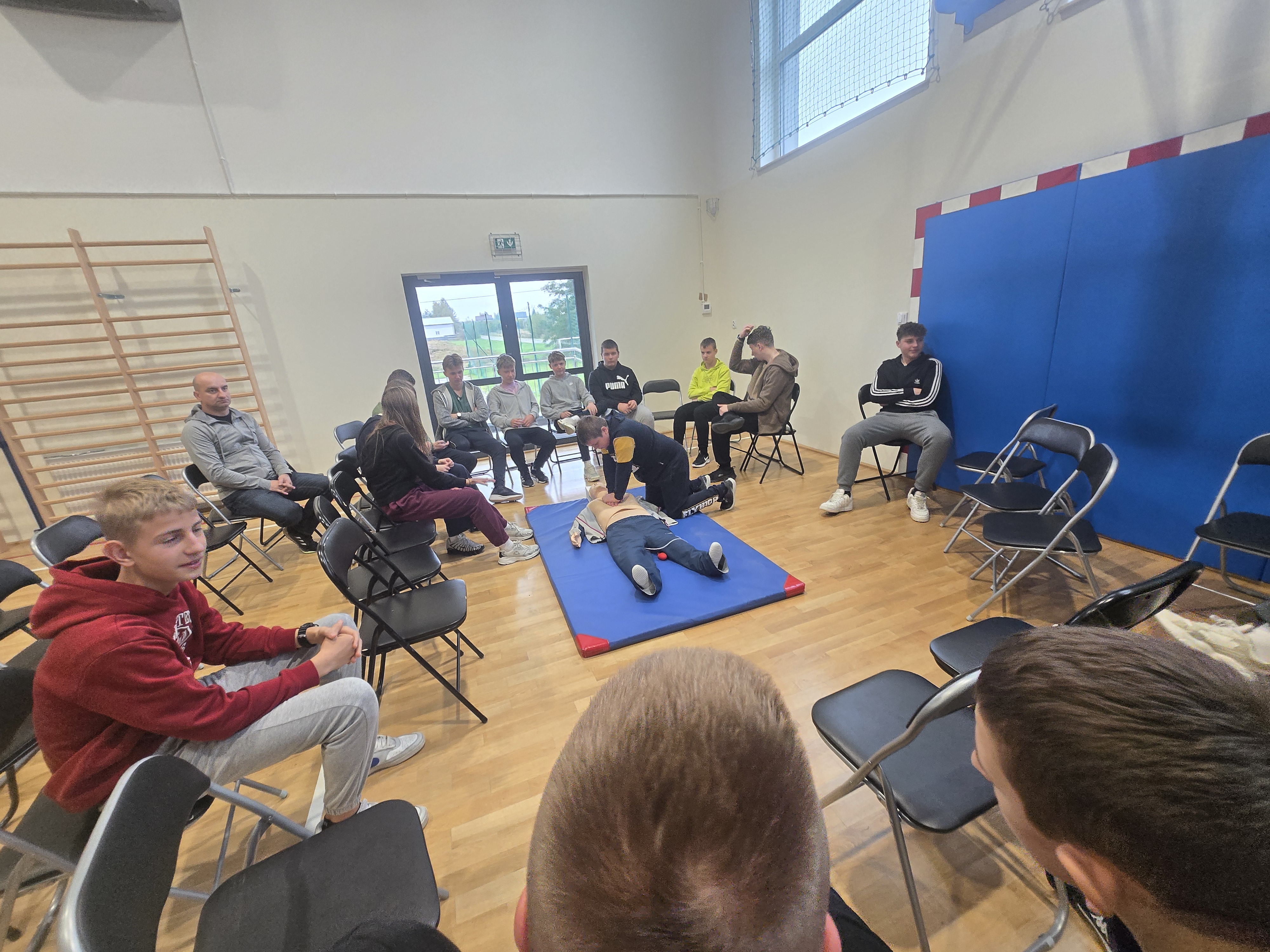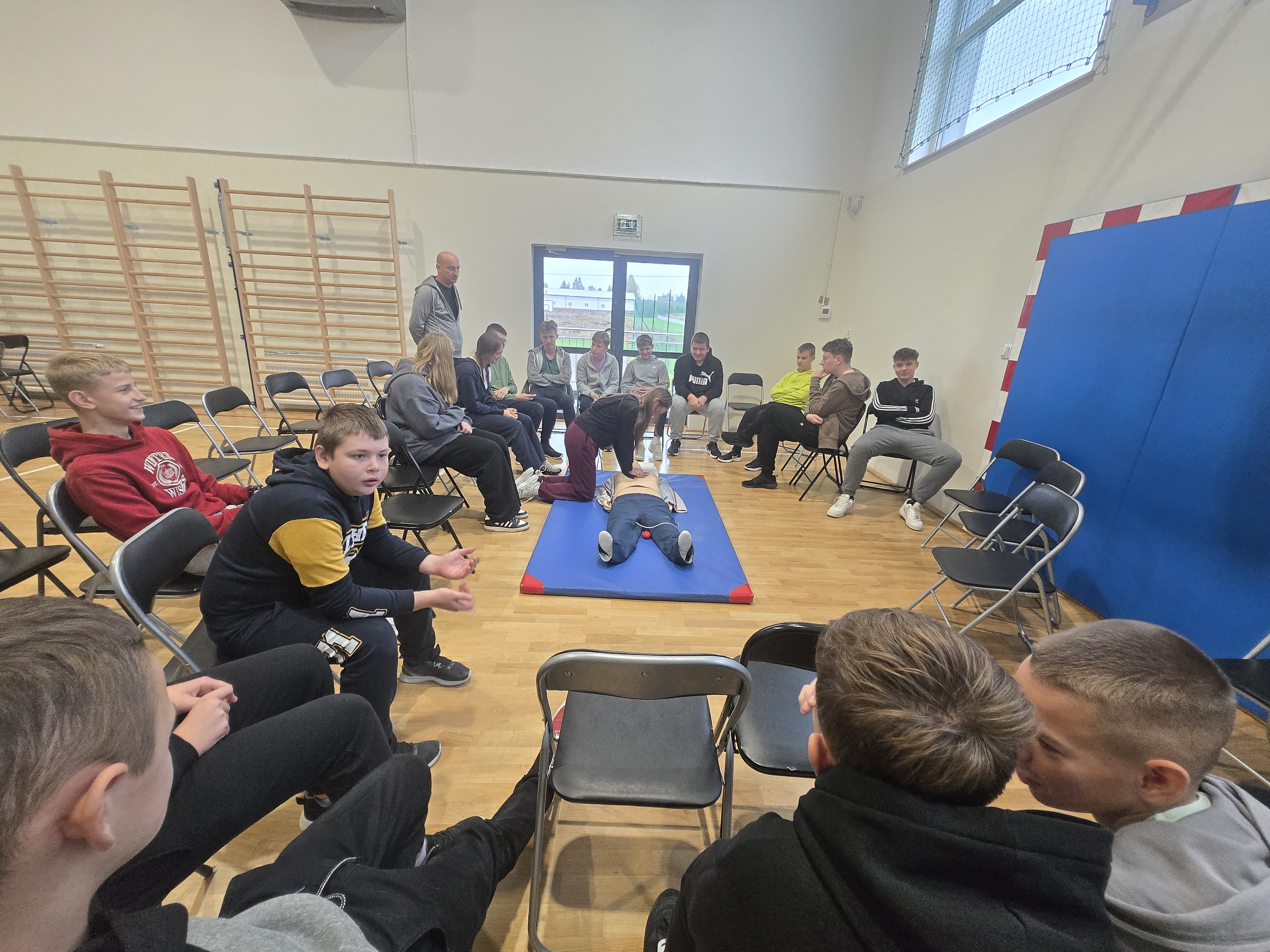 Przed rozpoczęciem akcji uczniowie zostali zapoznani przez pana Karola Trocia z zasadami prawidłowego wykonywania RKO oraz przypomniano im podstawowe kroki udzielania pomocy osobie nieprzytomnej. Całość przebiegała w przyjaznej atmosferze i pod okiem nauczycieli oraz opiekunów.