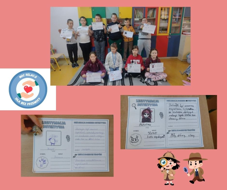 Uczniowie wcielili się w rolę detektywów relacji, aby odkrywać, jak ważne są słowa i gesty w codziennych kontaktach. Wspólnie uczyli się rozpoznawać i nazywać emocje, które towarzyszą różnym zachowaniom, a także tworzyć komunikaty wspierające w trudnych sytuacjach wobec kolegów i koleżanek.