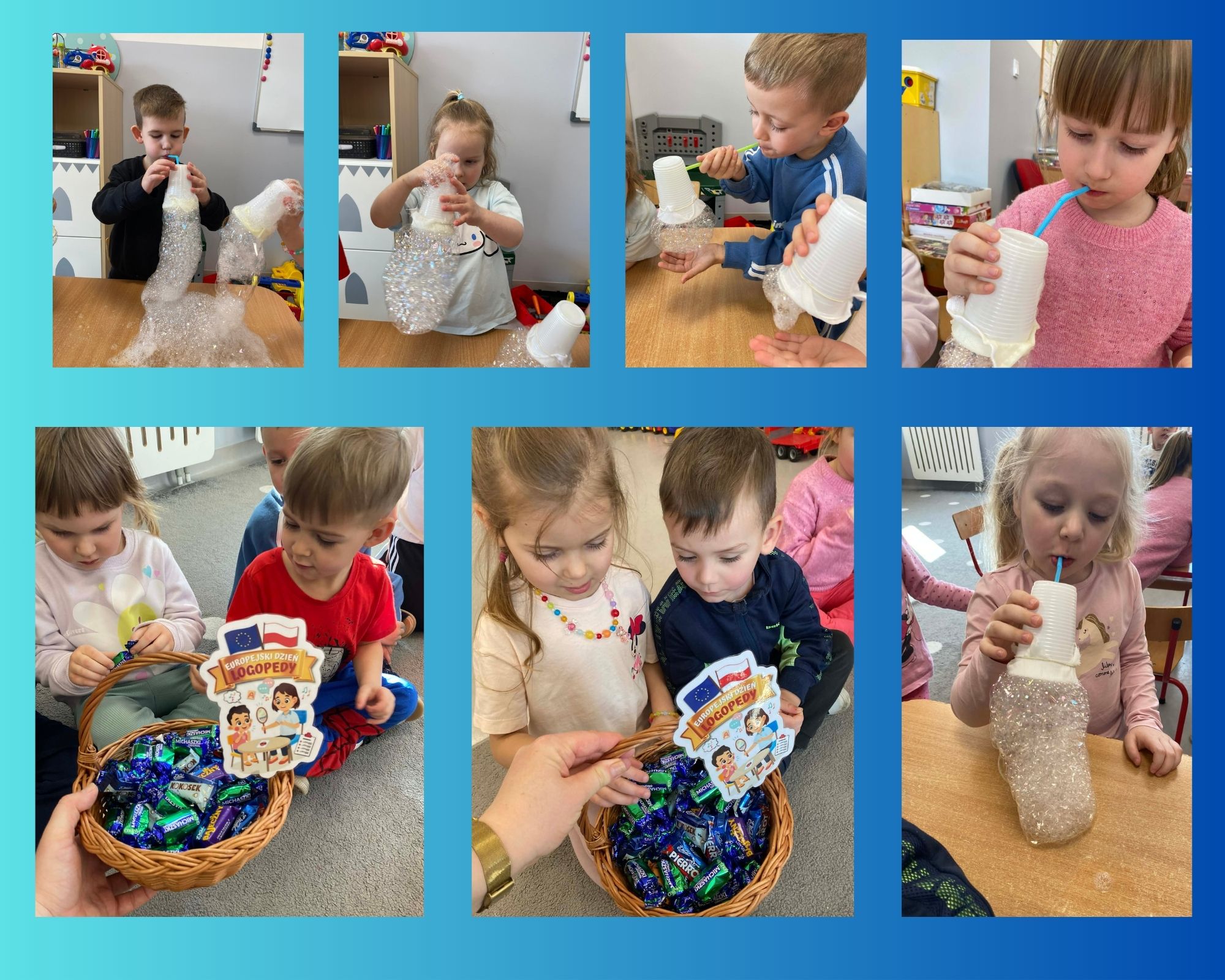 Europejski Dzień Logopedy obchodzony jest co roku 6 marca we wszystkich krajach UE. Celem święta jest podnoszenie świadomości na temat zaburzeń komunikacji, promowanie zawodu logopedy oraz podkreślenie znaczenia profilaktyki i terapii mowy u dzieci i dorosłych. To czas warsztatów, konsultacji i edukacji logopedycznej. Z tej okazji dzieci z przedszkola oraz klasy 1 uczestniczyły w grupowych zajęciach podczas których zapoznały się z warsztatem pracy logopedy oraz wykonywały ćwiczenia usprawniające aparat artykulacyjny, ćwiczenia oddechowe. Uczestnicy zajęć przygotowali logopedyczny eliksir, na który dmuchali za pomocą słomki tworząć wielką pianę - zabawa nie miała końca!
