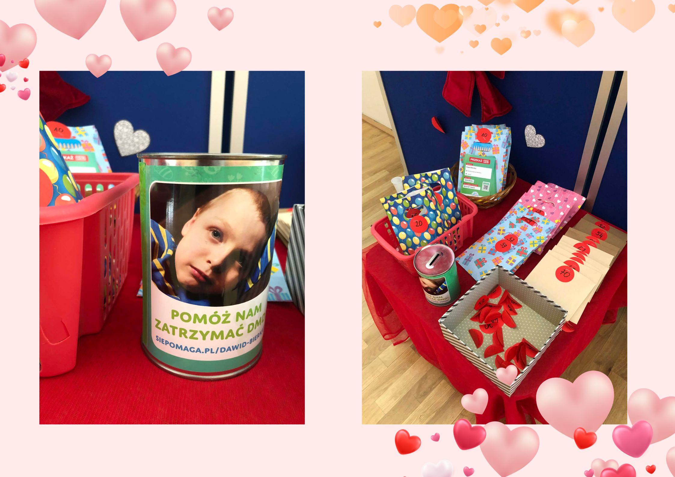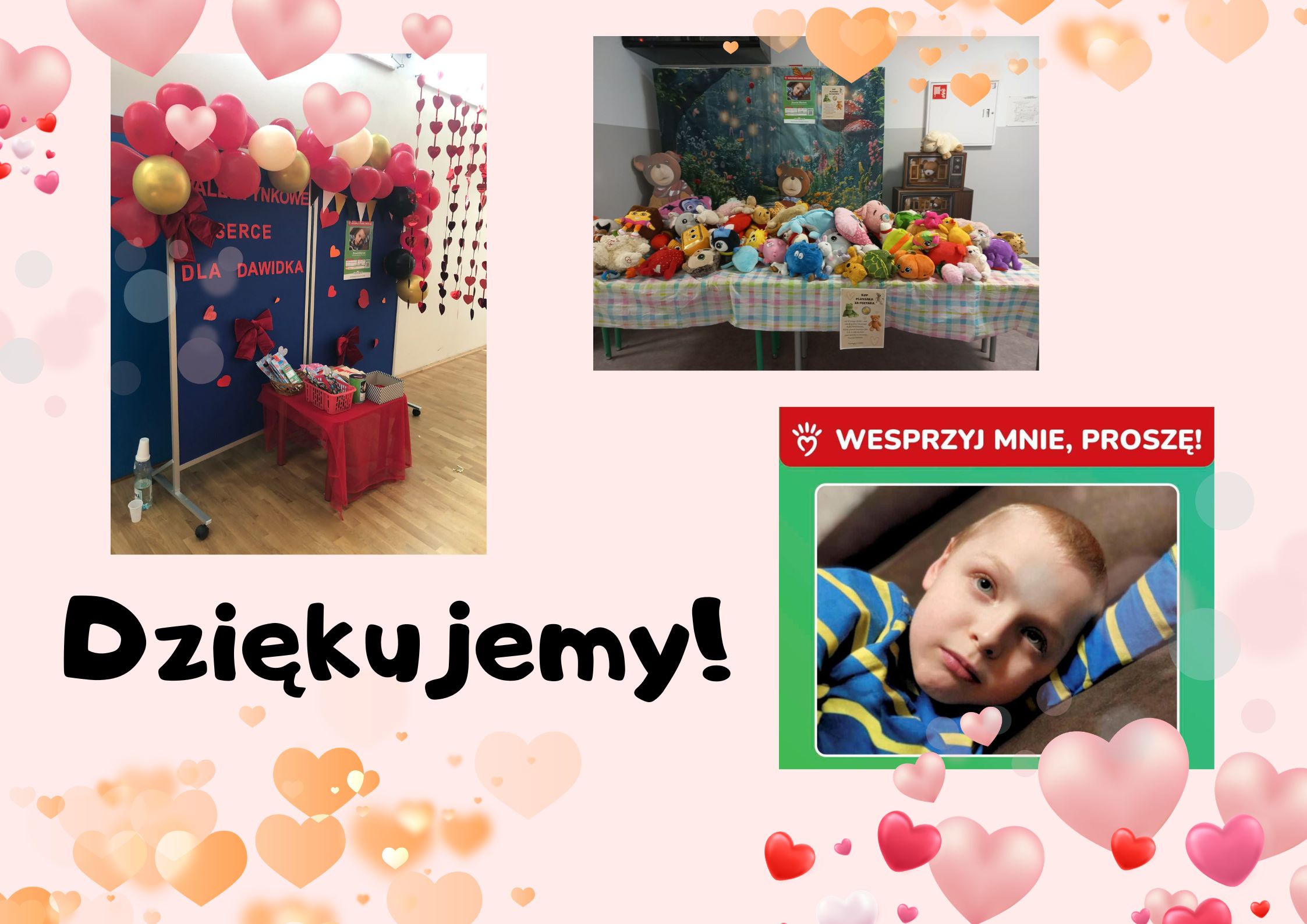 Podczas balu dla najmłodszych zorganizowano specjalne stoisko pod hasłem Serce dla Dawidka, przy którym rodzice i opiekunowie mogli wesprzeć zbiórkę. Z kolei wszyscy mogli odwiedzić stoisko przygotowane przez Szkolny Klub Wolontariatu - akcję KUP PLUSZAKA ZA PIĄTAKA. Dzięki wcześniejszej zbiórce maskotek, pluszowe zabawki za symboliczne 5 zł zyskały nowe domy, a dochód z ich sprzedaży w całości zasilił fundusz pomocy chłopcu. Przez cały czas trwania imprezy każdy uczestnik mógł również wrzucić swoją cegiełkę do puszek wolontariuszy.