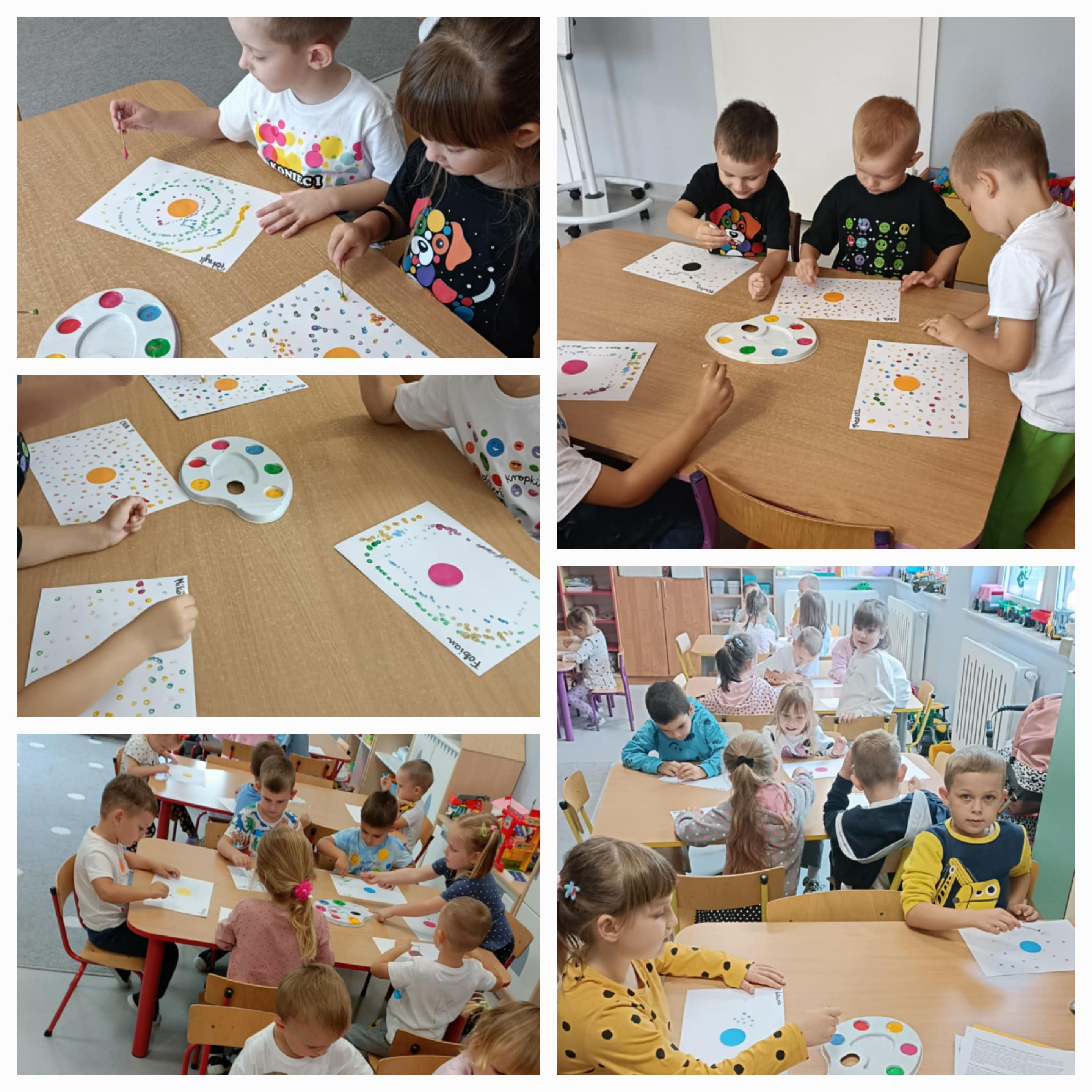W poniedziałek 15 września obchodziliśmy Międzynarodowy Dzień Kropki. Zaprosiliśmy wszystkie dzieci do wspólnej zabawy, zwracając uwagę na to, że każdy ma jakiś talent. Trzeba go tylko odkryć i odważyć się nim podzielić. Mnóstwo kolorowych kropek, kropeczek zagościło w przedszkolnych salach i na ubraniach dzieci. To był bardzo kolorowy, kreatywny i wesoły dzień. Każdy miał szanse odkryć w sobie coś niezwykłego.