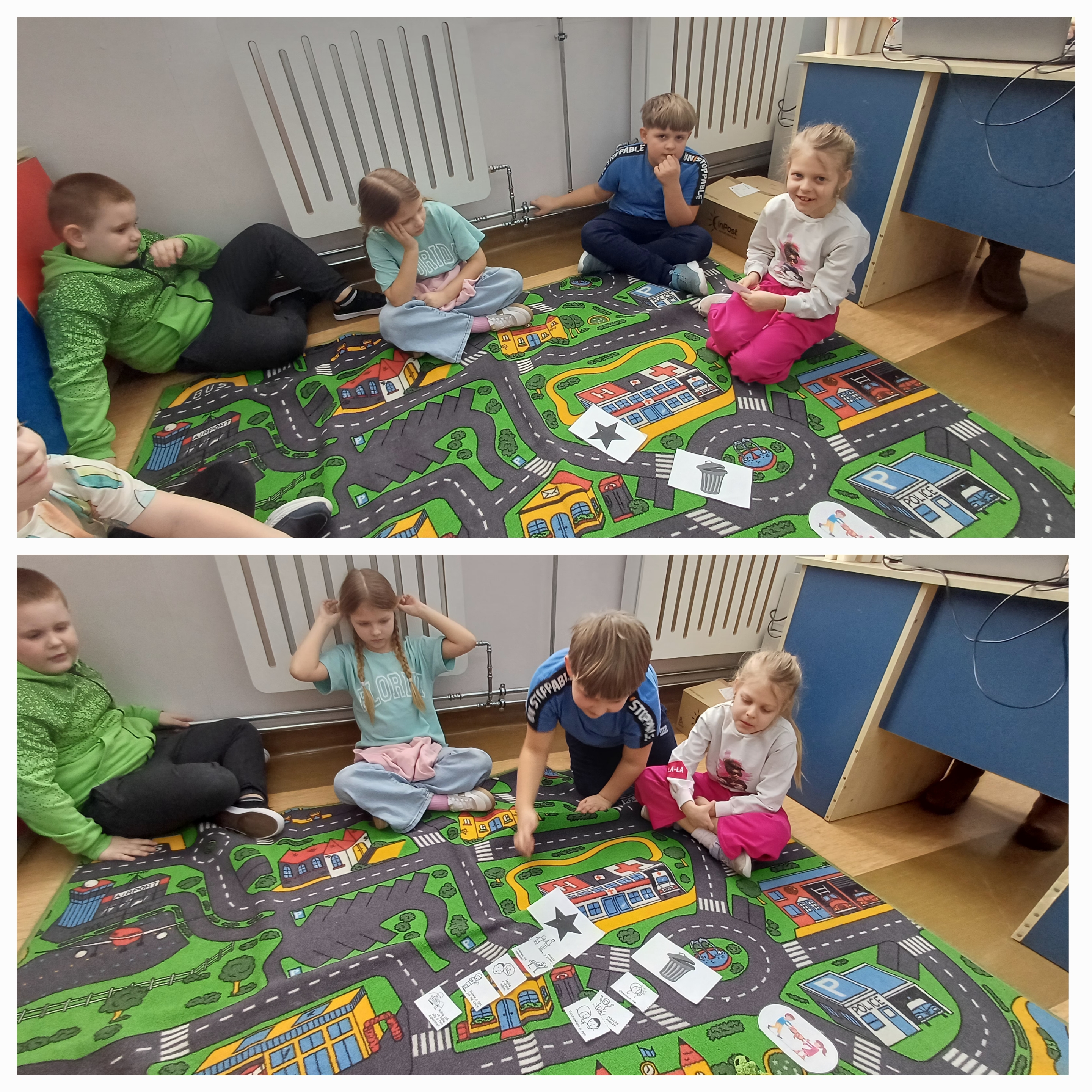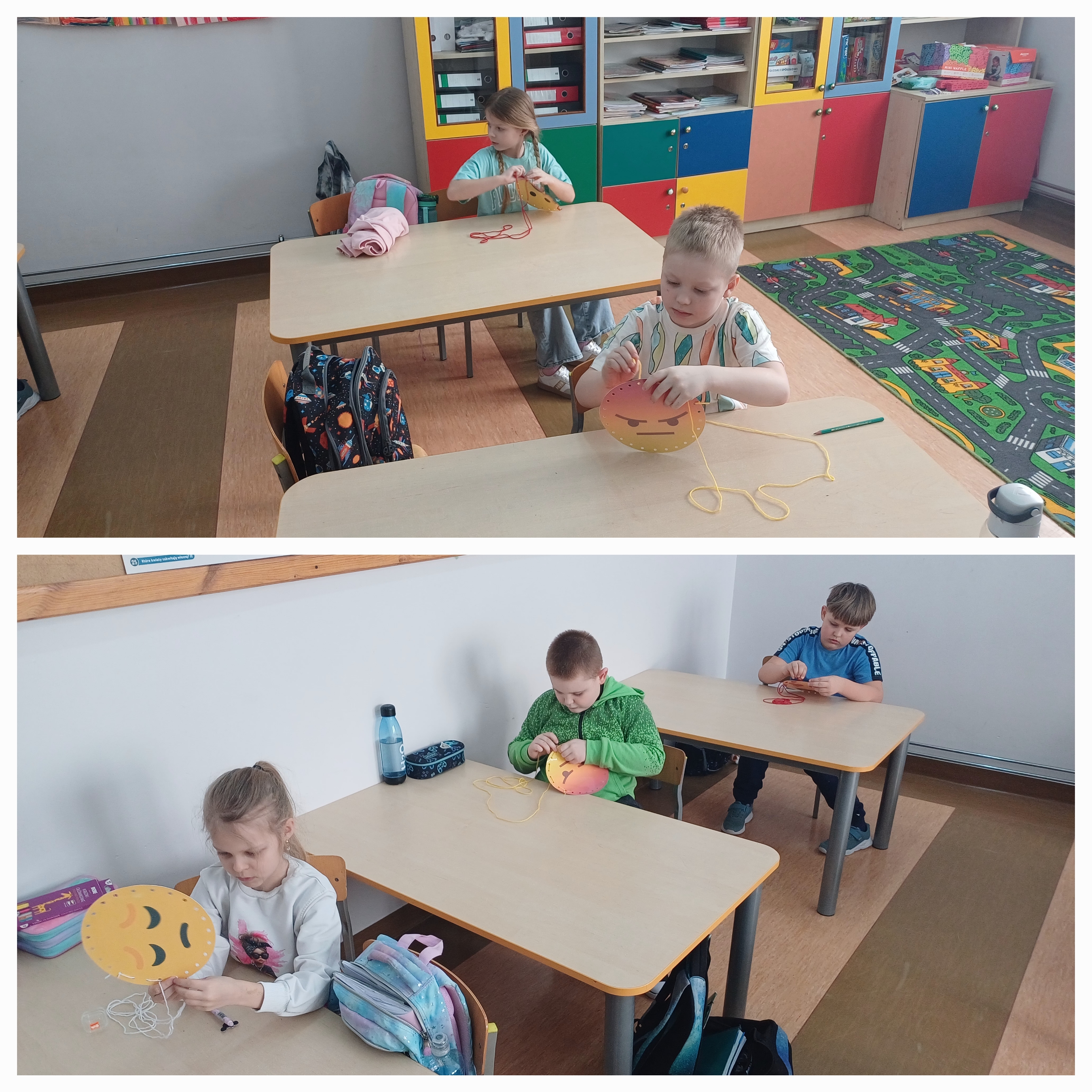 W klasie I i II odbyły się kolejne zajęcia w ramach programu profilaktycznego ,,Przyjaciele Zippiego. Słuchając opowiadania ,,Świat pełen uczuć doskonaliliśmy umiejętność rozpoznawania uczuć nieprzyjemnych u bohaterów. Omówiliśmy sposoby radzenia sobie z trudnymi emocjami. Wykonaliśmy ćwiczenie wspierające rozwój emocjonalno-społeczny poszukując strategii radzenia sobie w sytuacjach przedstawionych na ilustracjach. Ćwiczyliśmy również motorykę małą wykonując przeplatanki.