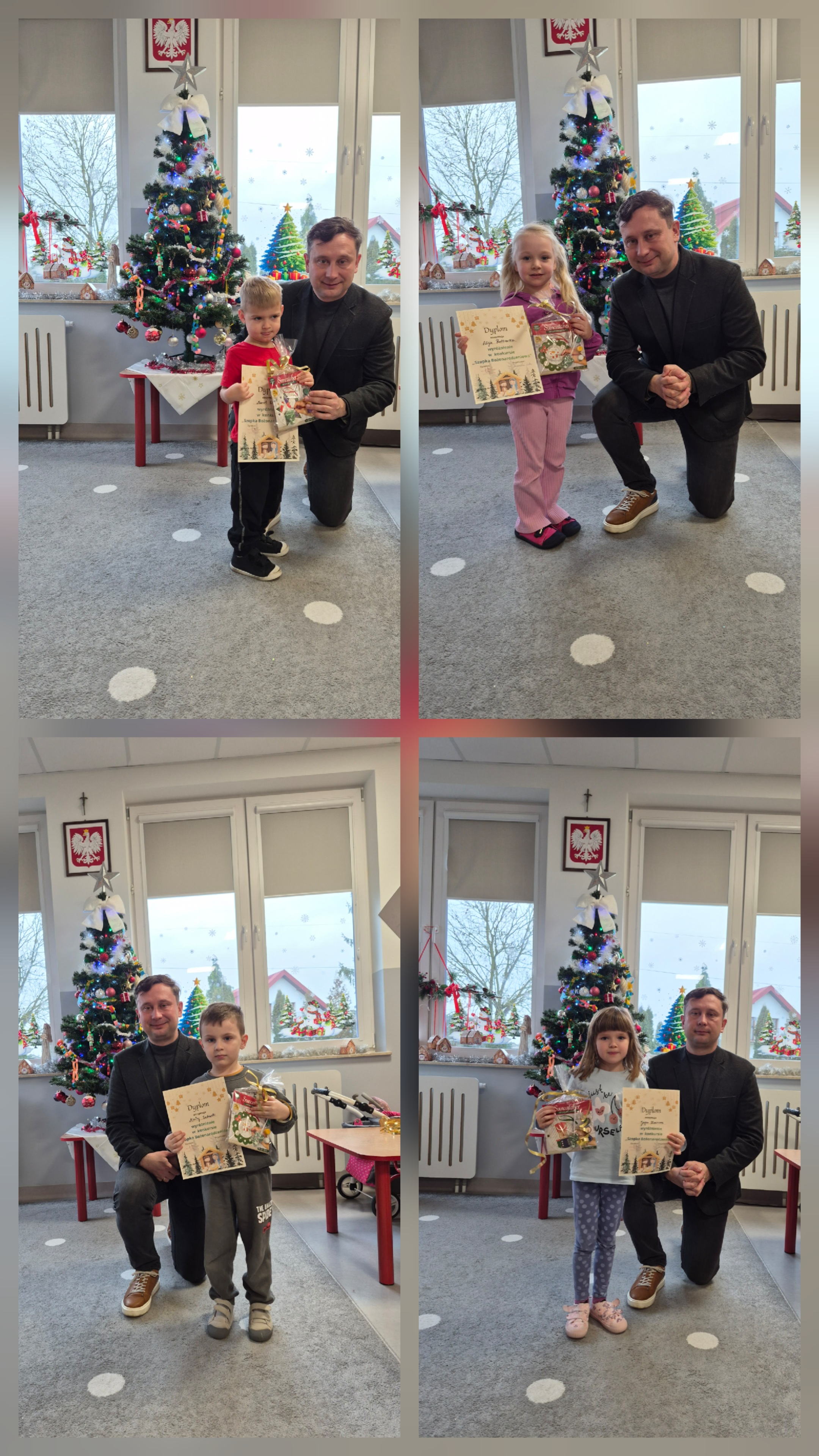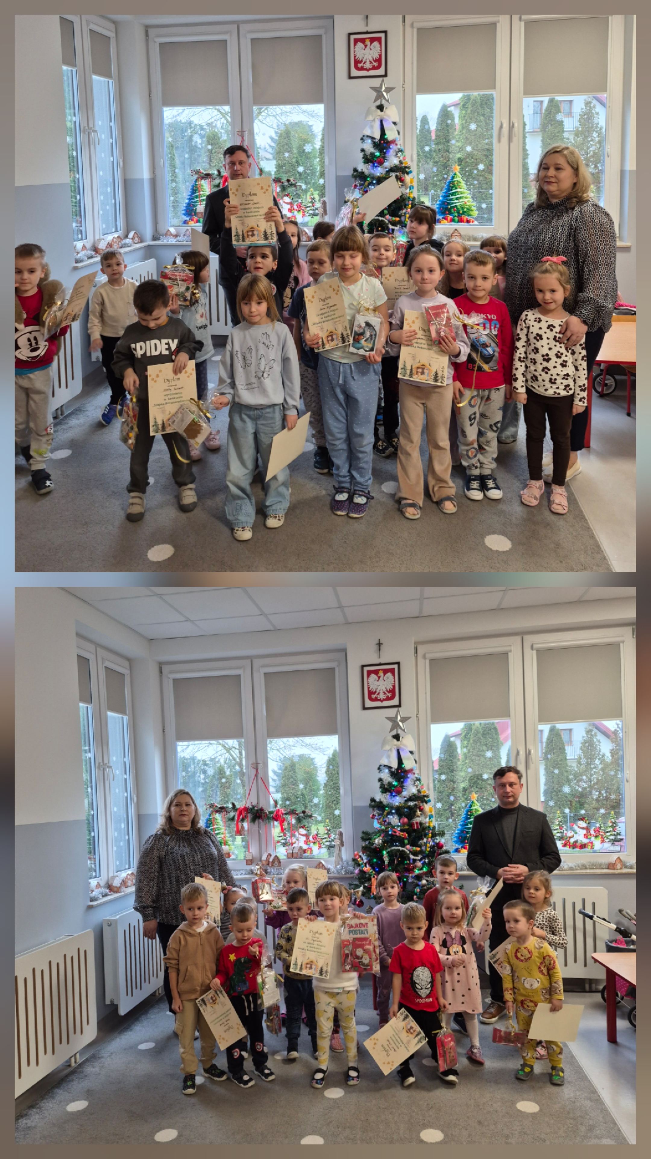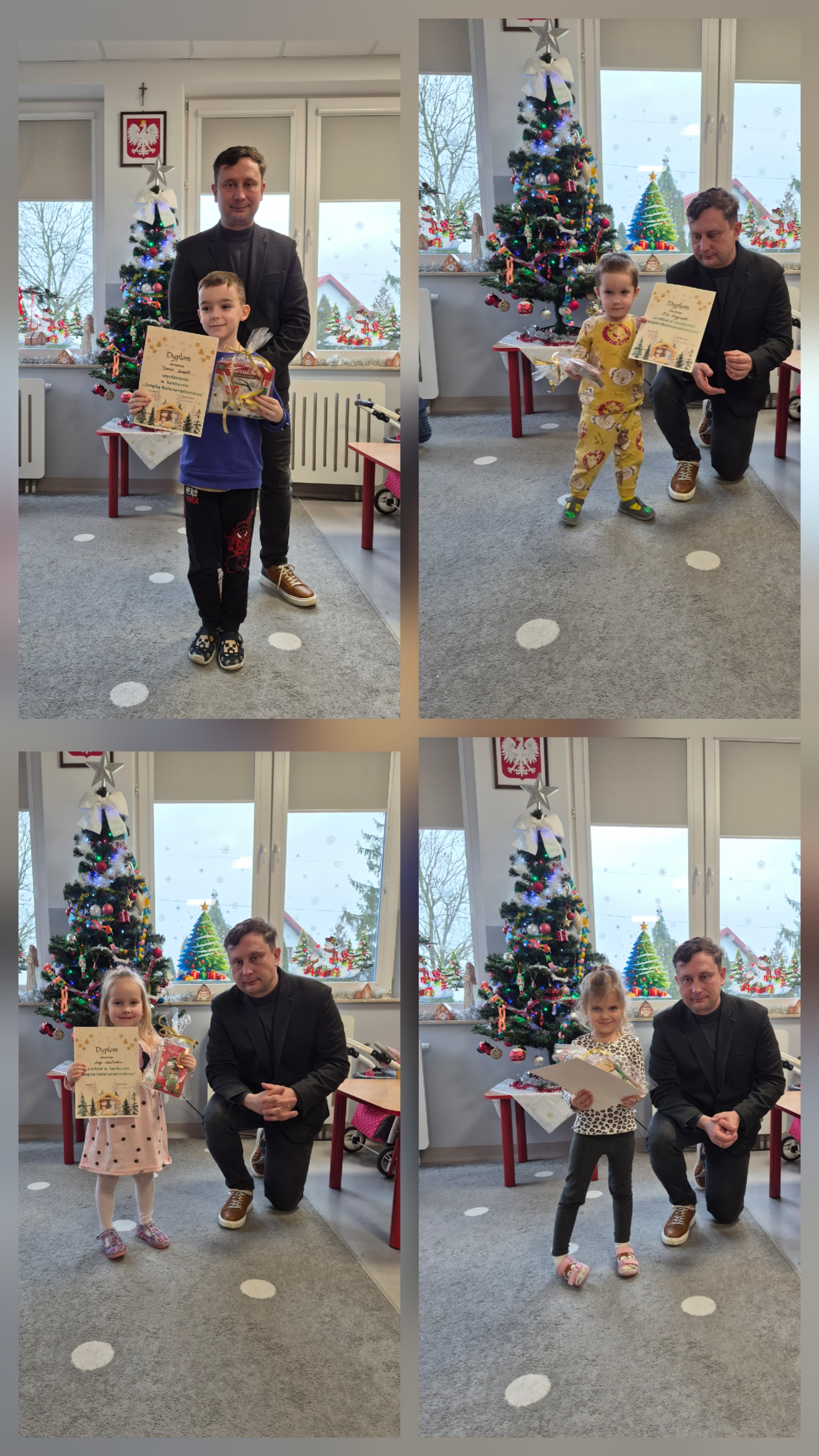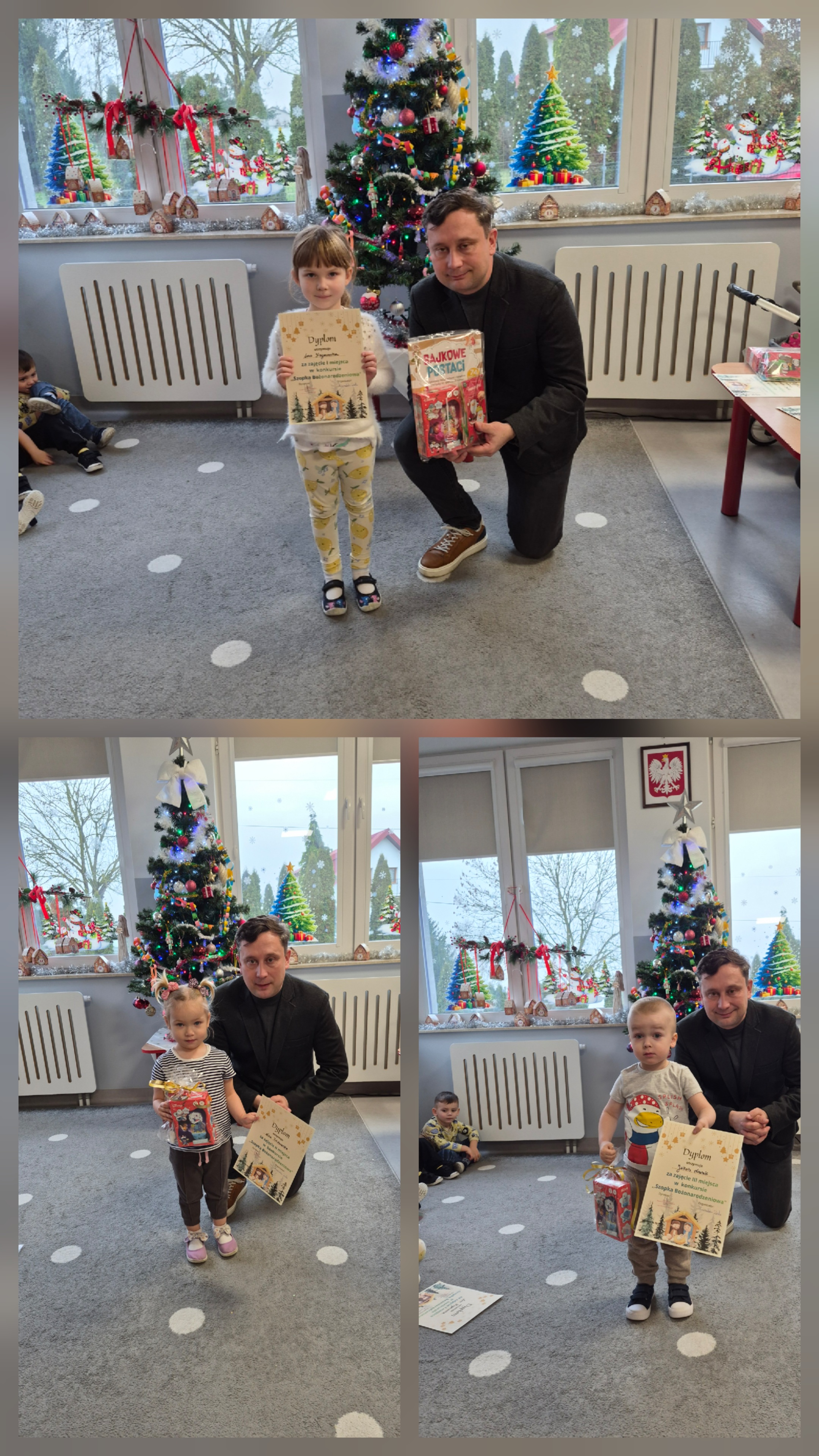 W poniedziałek 15 grudnia, odbyło się rozstrzygnięcie konkursu plastycznego pt: "Szopka Bożonarodzeniowa". W konkursie wzięło udział 24 wyjątkowe szopki, które zachwycały pomysłowością, starannością wykonania oraz różnorodnością. Prace były efektem pięknej, wspaniałej współpracy dzieci wraz z rodzicami. 16 grudnia odbyło się wręczenie pamiątkowych dyplomów oraz upominków dla uczestników konkursu. Wszystkie prace konkursowe, zostały wystawione podczas świątecznego kiermaszu w przedszkolu. Serdecznie dziękujemy za udział i składamy gratulacje dla zwycięzców.