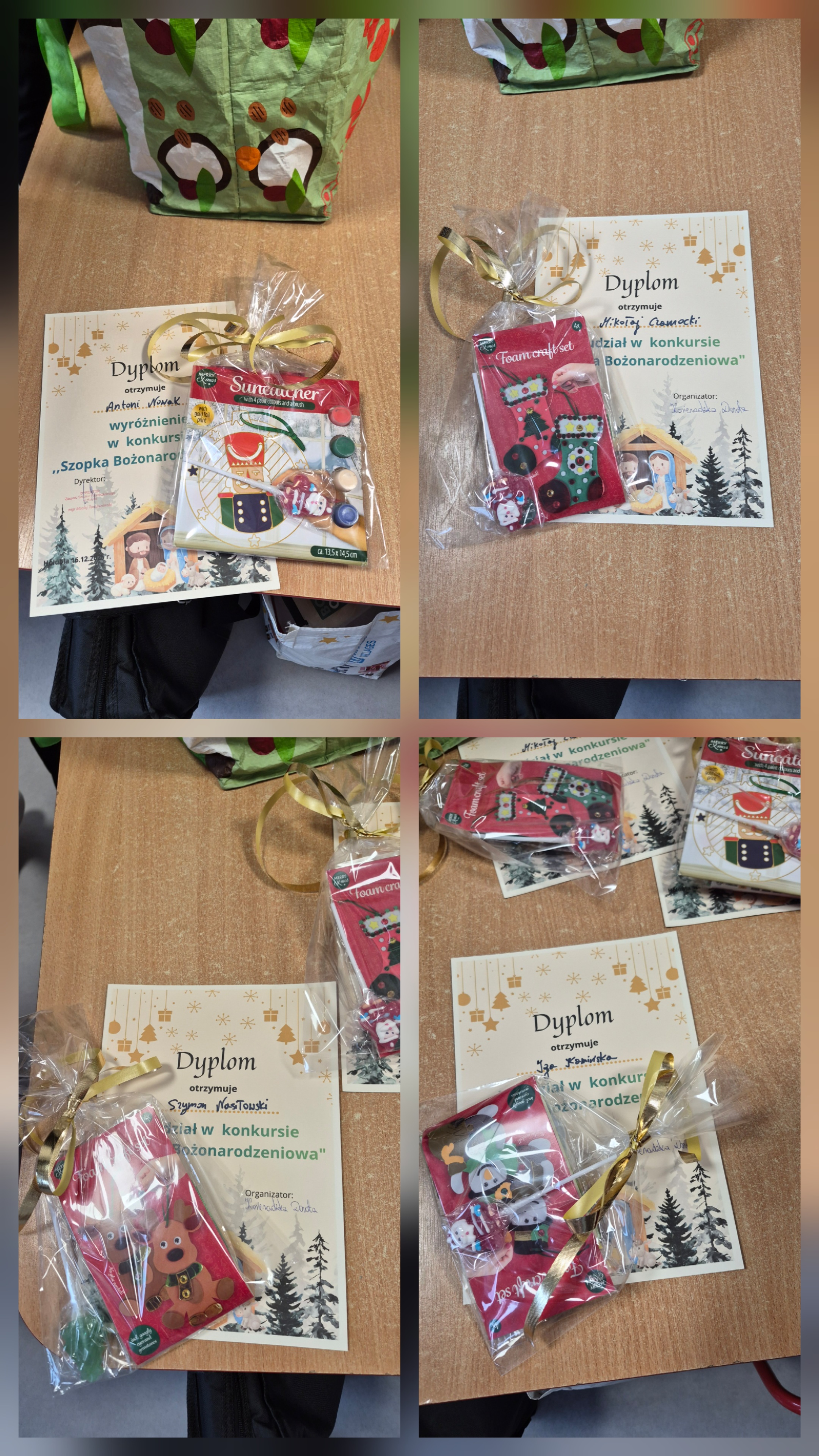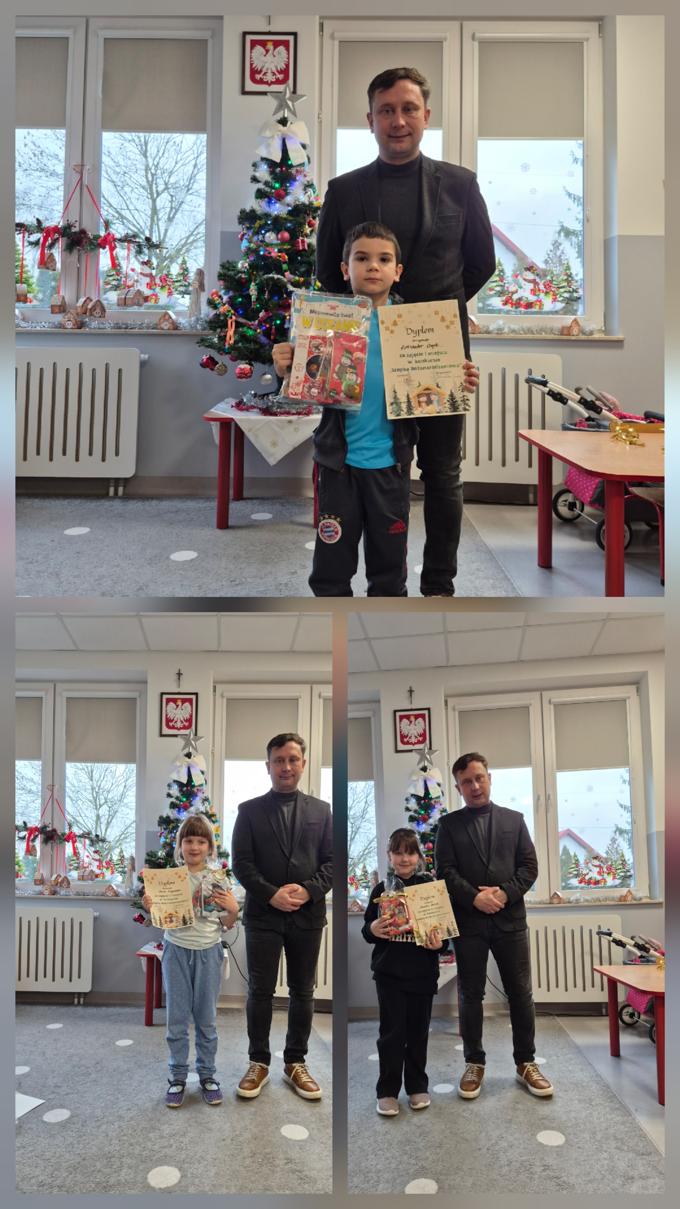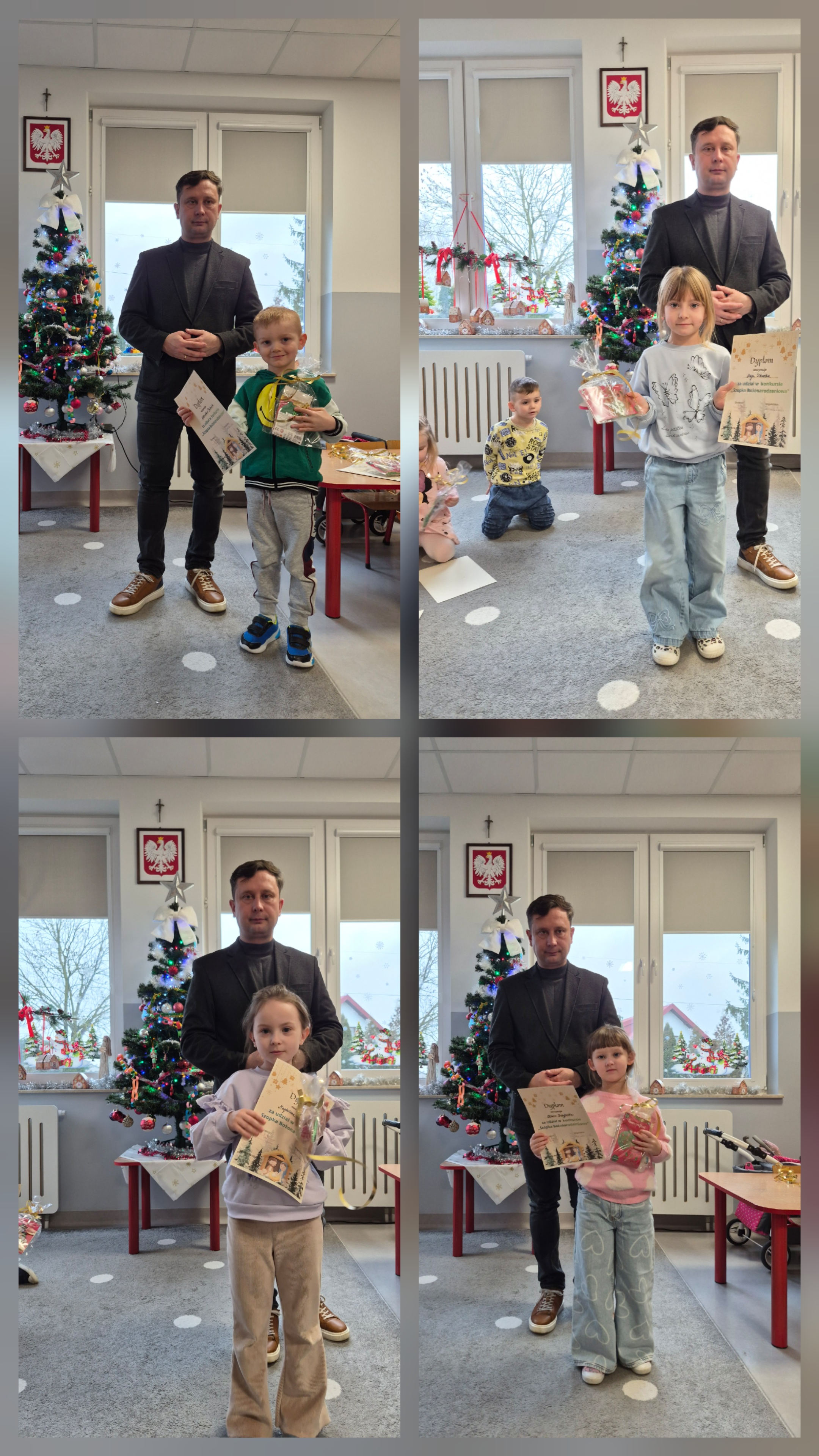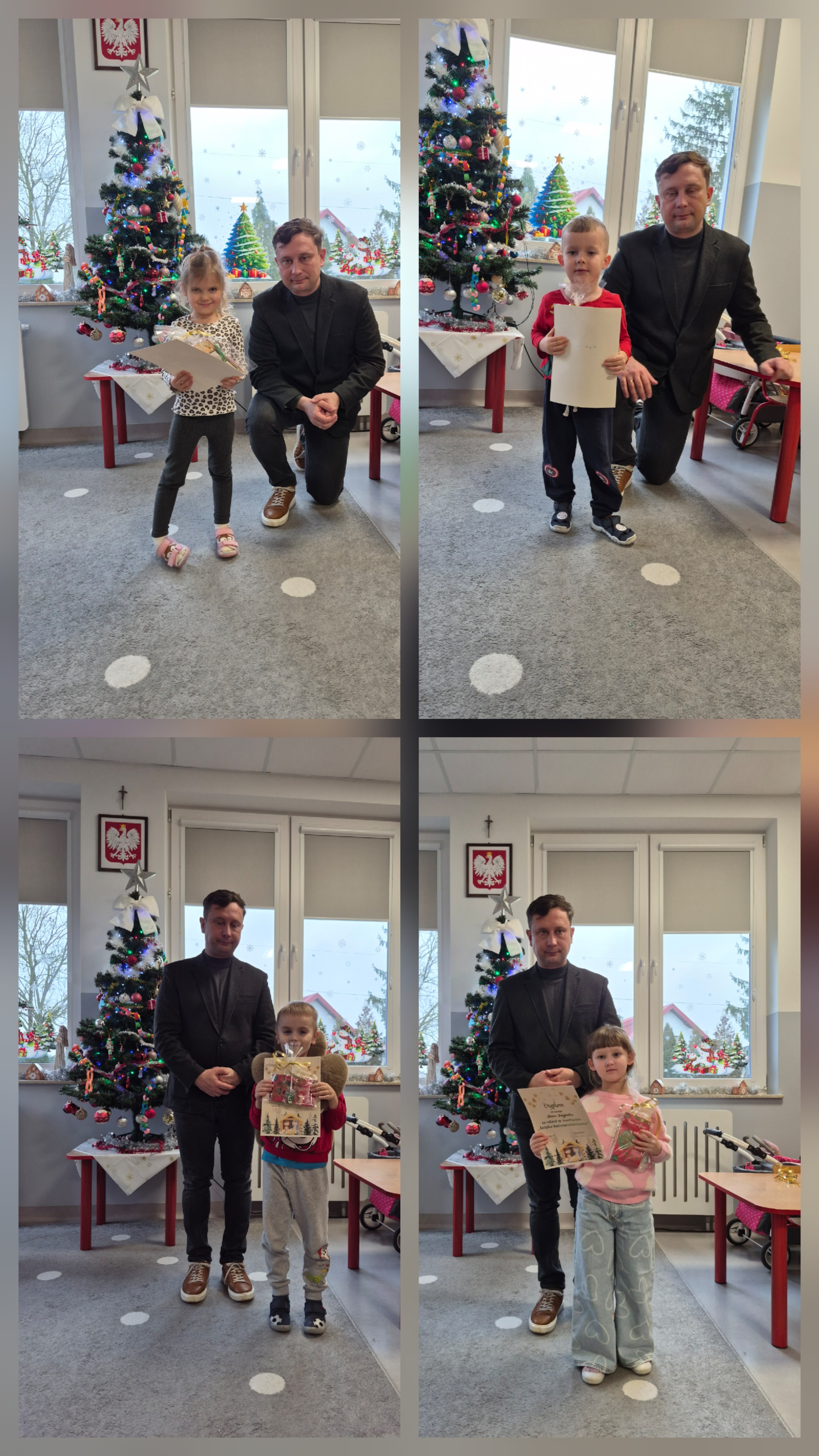 W poniedziałek 15 grudnia, odbyło się rozstrzygnięcie konkursu plastycznego pt: "Szopka Bożonarodzeniowa". W konkursie wzięło udział 24 wyjątkowe szopki, które zachwycały pomysłowością, starannością wykonania oraz różnorodnością. Prace były efektem pięknej, wspaniałej współpracy dzieci wraz z rodzicami. 16 grudnia odbyło się wręczenie pamiątkowych dyplomów oraz upominków dla uczestników konkursu. Wszystkie prace konkursowe, zostały wystawione podczas świątecznego kiermaszu w przedszkolu. Serdecznie dziękujemy za udział i składamy gratulacje dla zwycięzców.