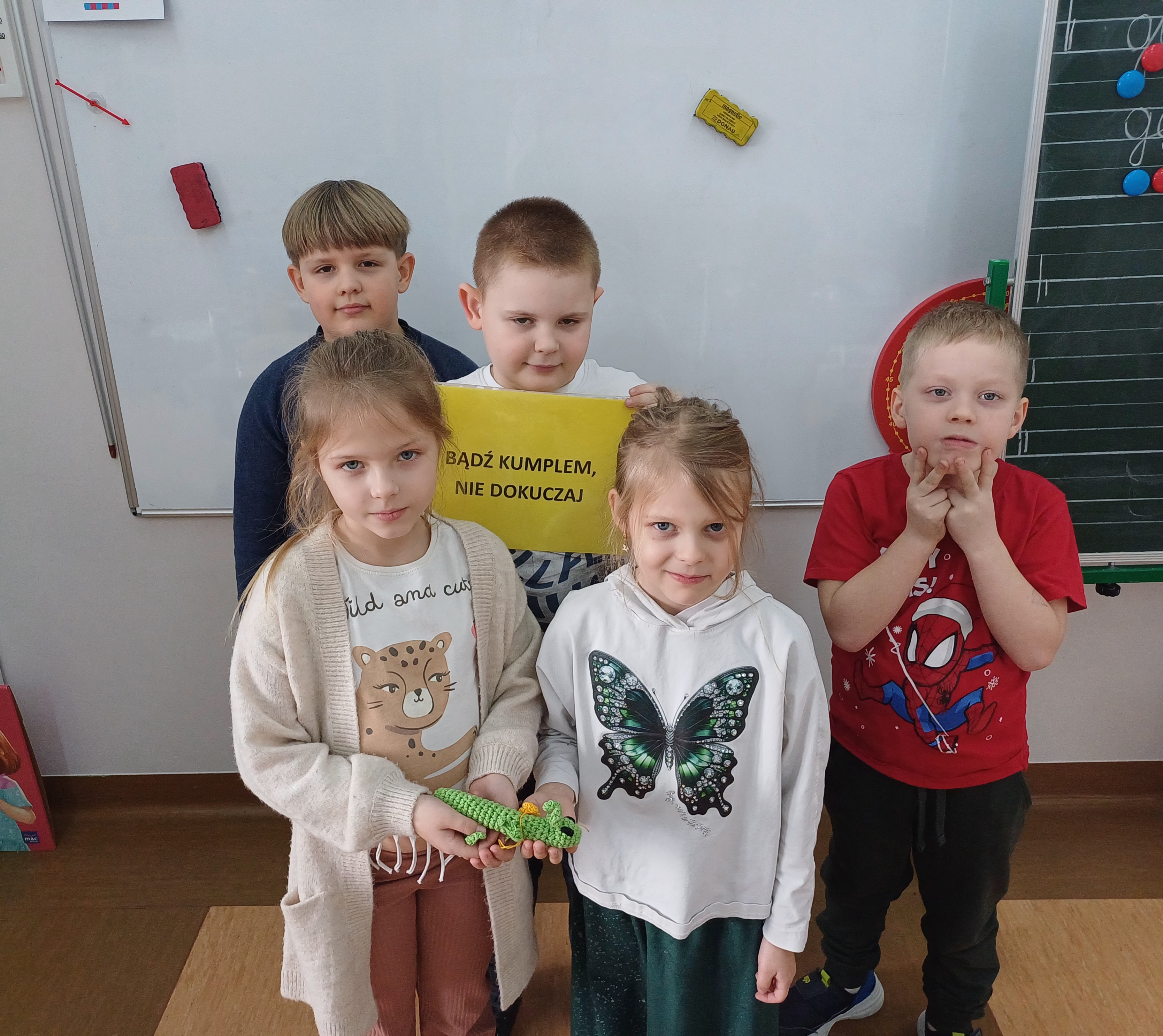 Podczas zajęć z psychologiem szkolnym zrealizowaliśmy pierwszą część programu poświęconą radzeniu sobie z trudnościami oraz roli pomagania sobie w relacjach rówieśniczych.