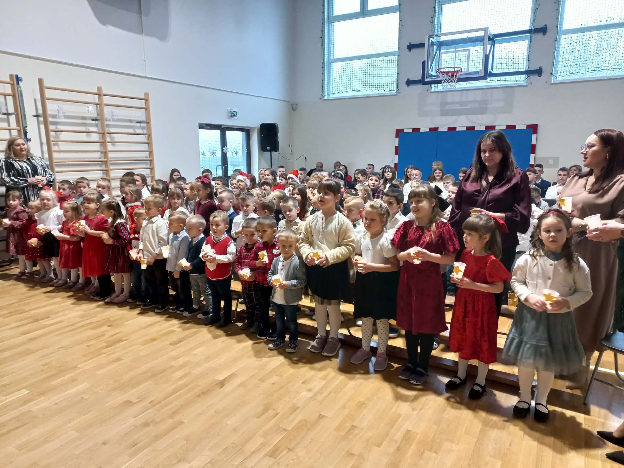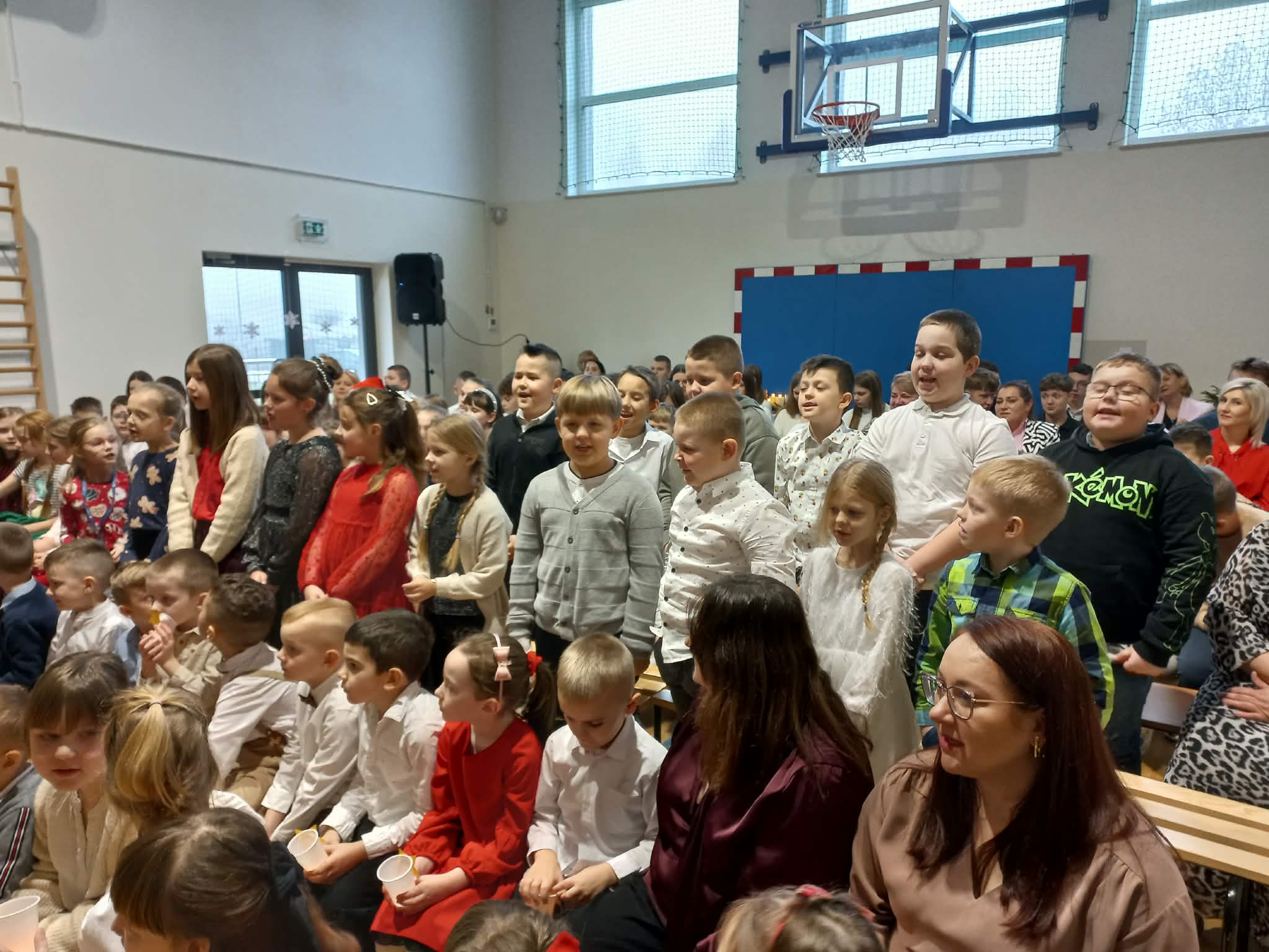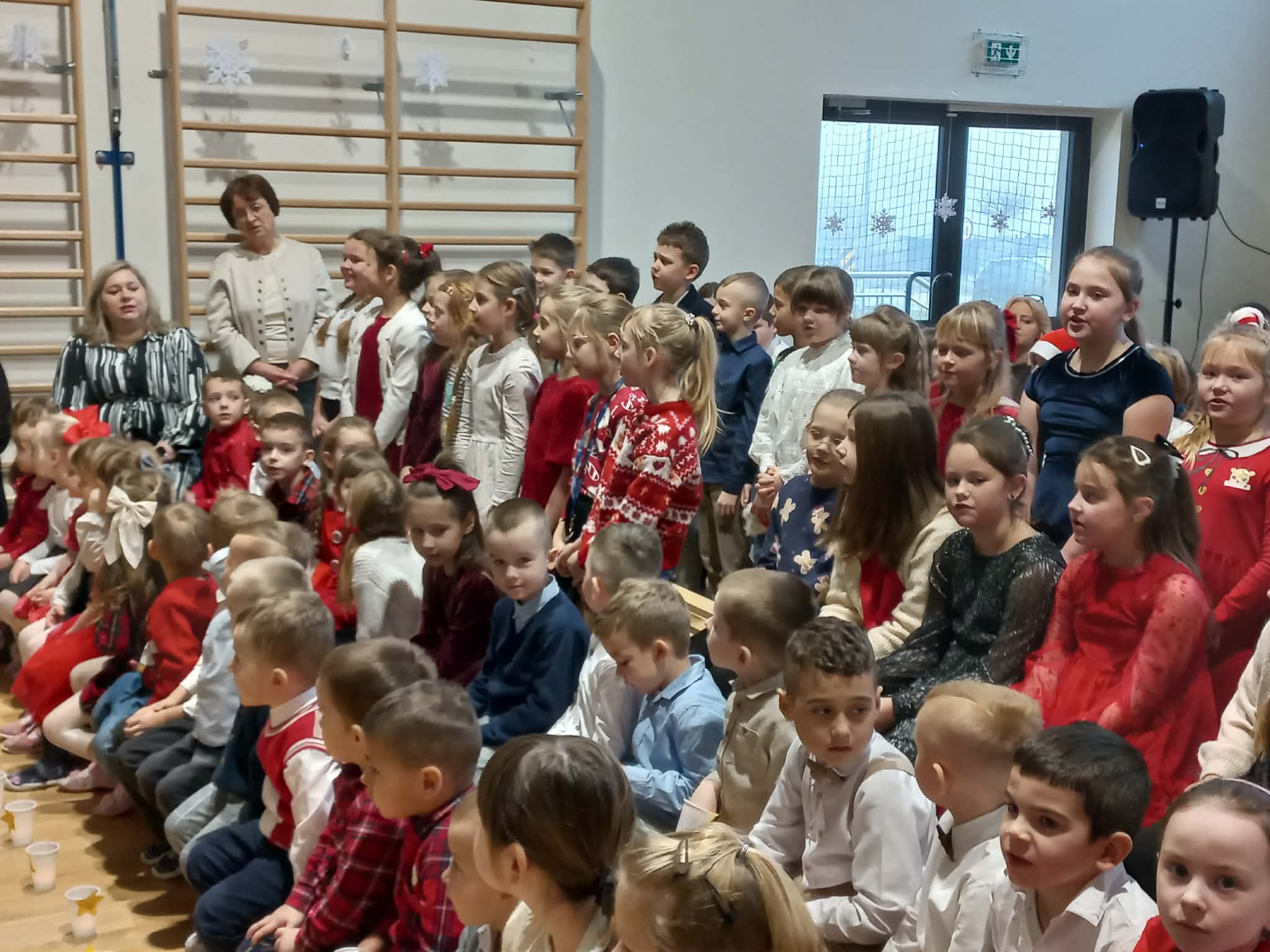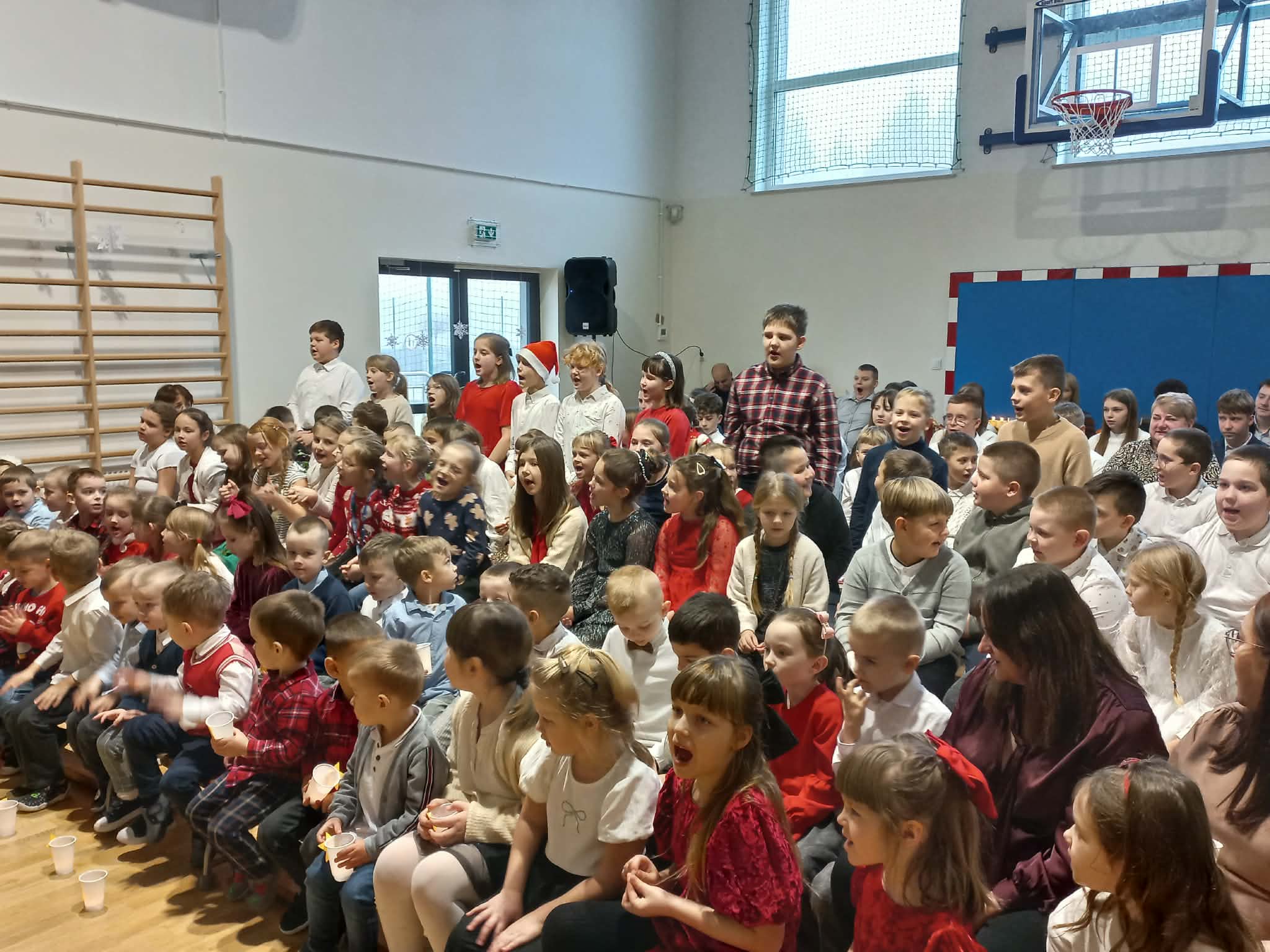 Centralnym punktem uroczystości było wspólne kolędowanie, w które zaangażowali się uczniowie wszystkich klas. Dzieci i młodzież z radością wykonywały tradycyjne polskie kolędy i pastorałki, tworząc niezwykle nastrojową i wzruszającą atmosferę. Wspólny śpiew stał się symbolem jedności, radości oraz pielęgnowania bożonarodzeniowych tradycji.