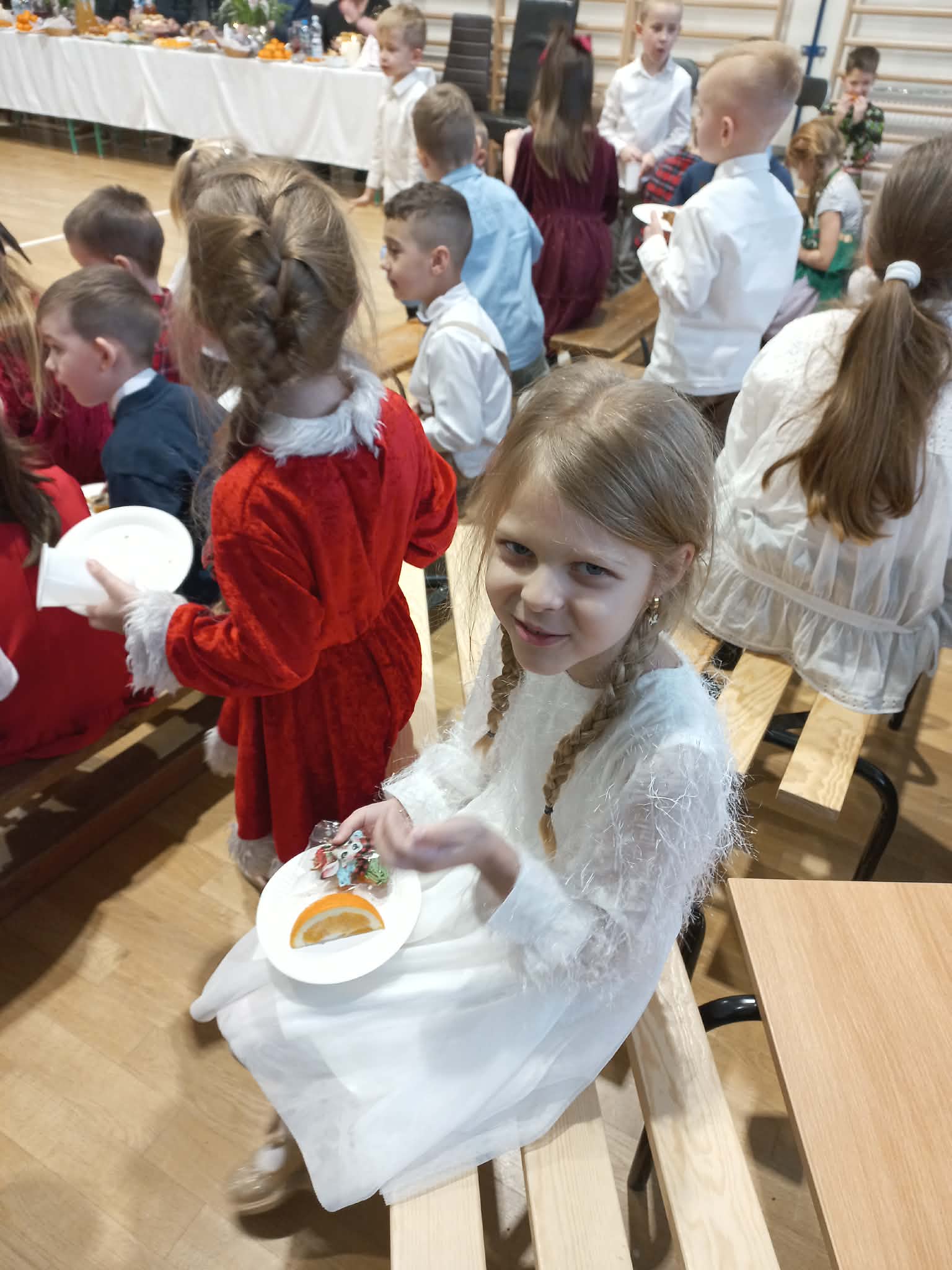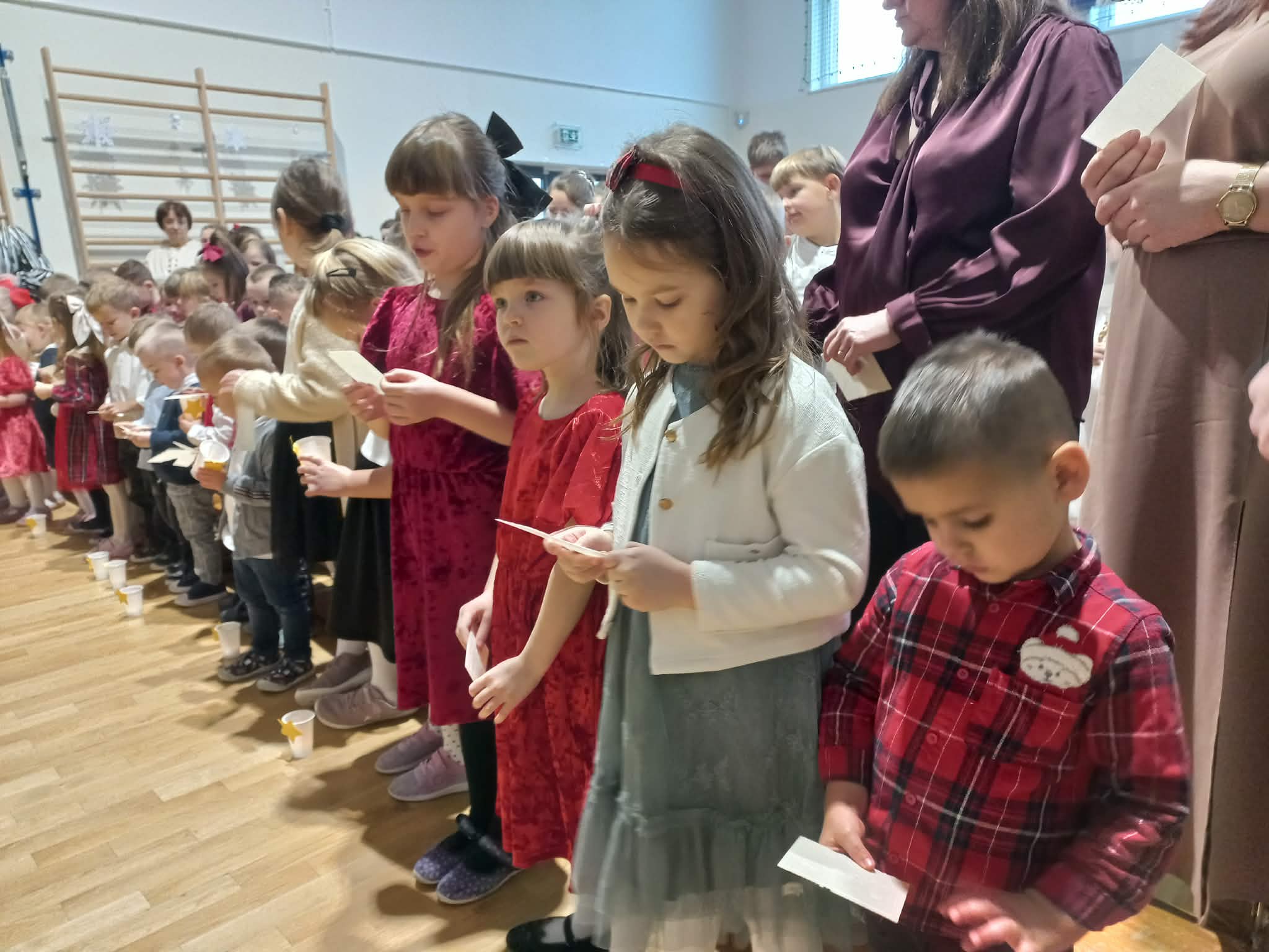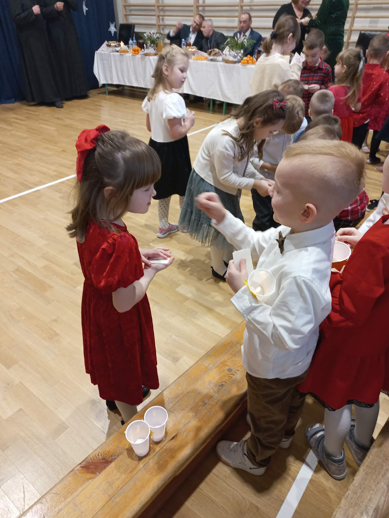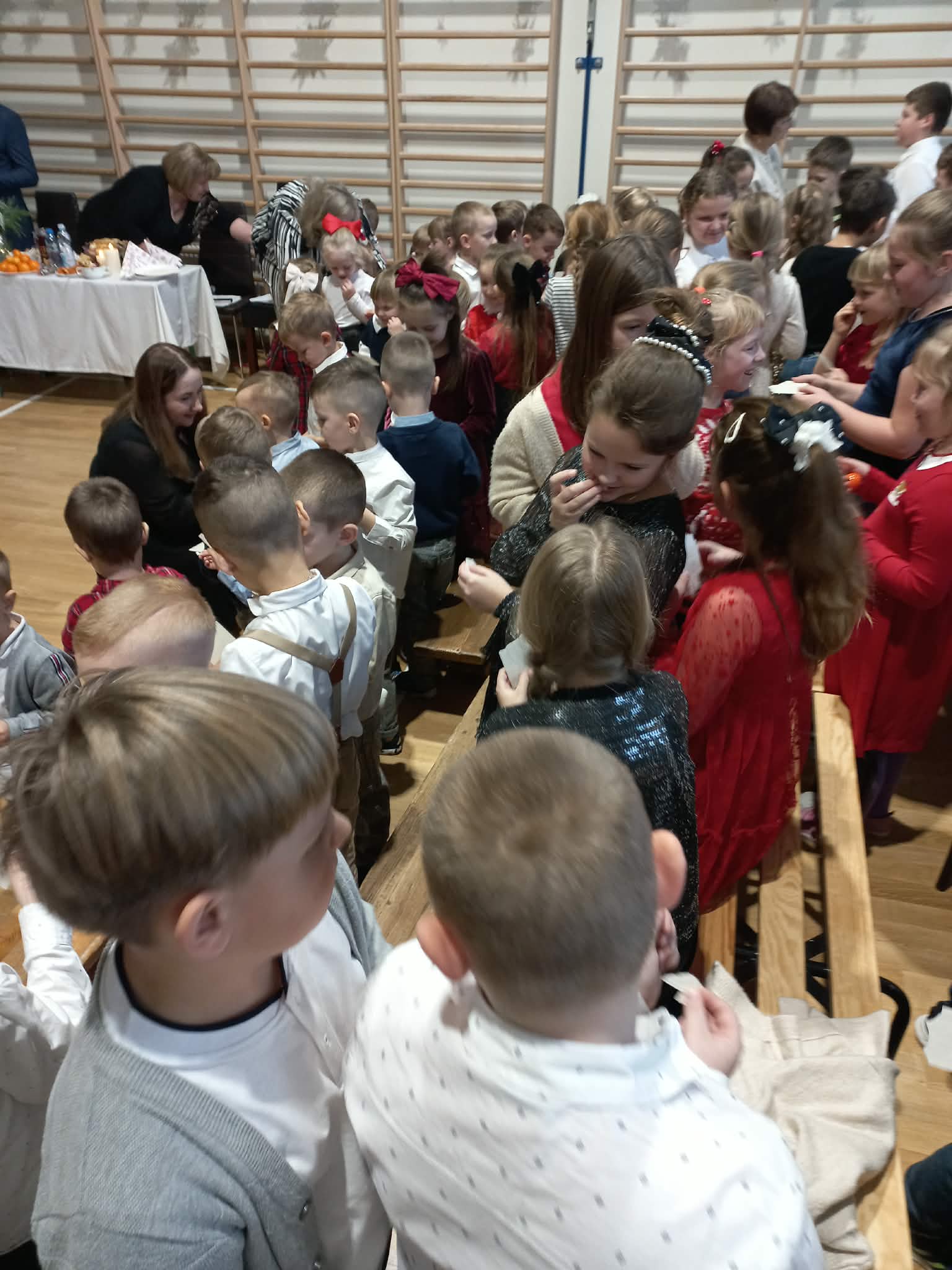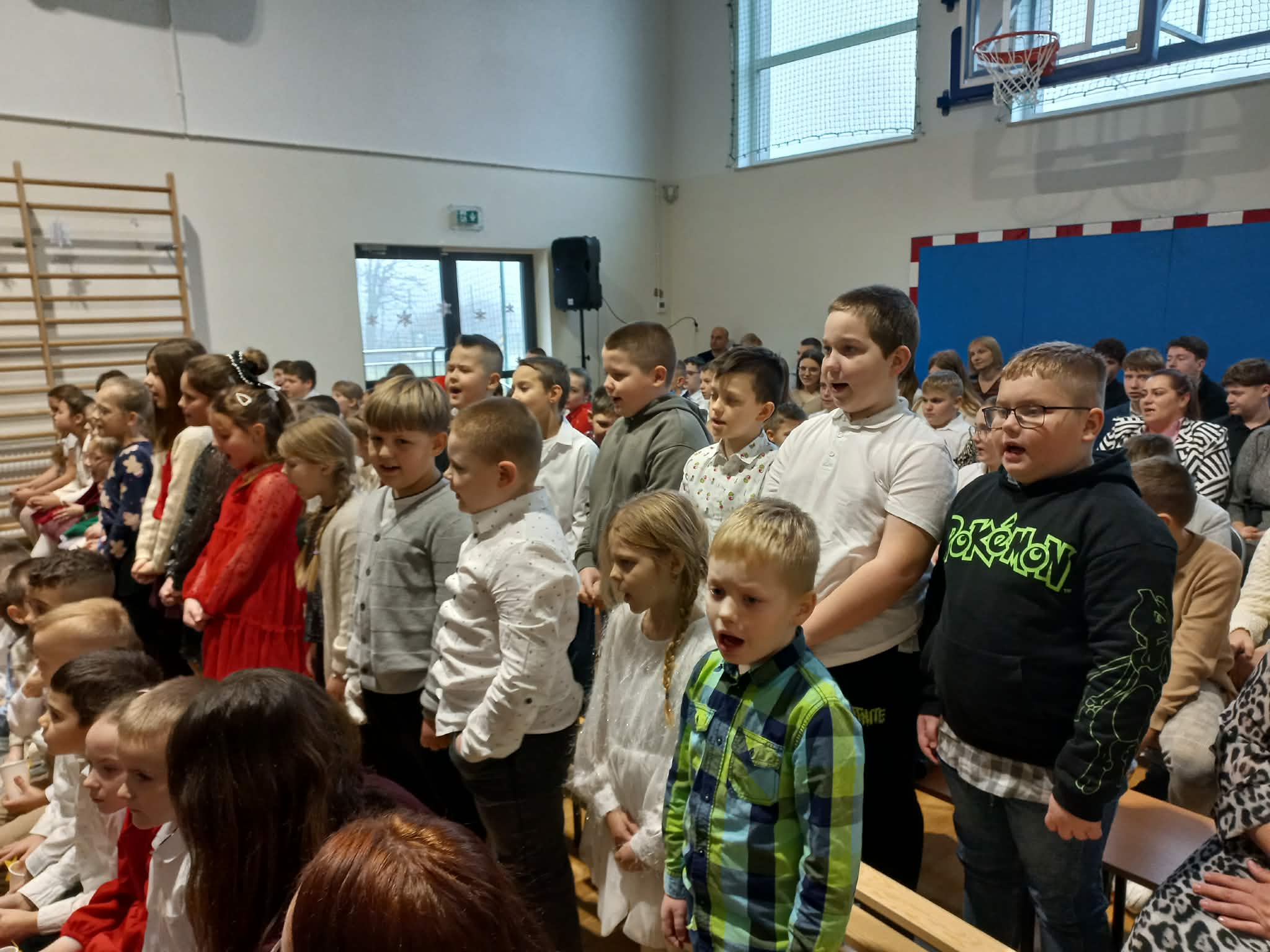 Centralnym punktem uroczystości było wspólne kolędowanie, w które zaangażowali się uczniowie wszystkich klas. Dzieci i młodzież z radością wykonywały tradycyjne polskie kolędy i pastorałki, tworząc niezwykle nastrojową i wzruszającą atmosferę. Wspólny śpiew stał się symbolem jedności, radości oraz pielęgnowania bożonarodzeniowych tradycji.