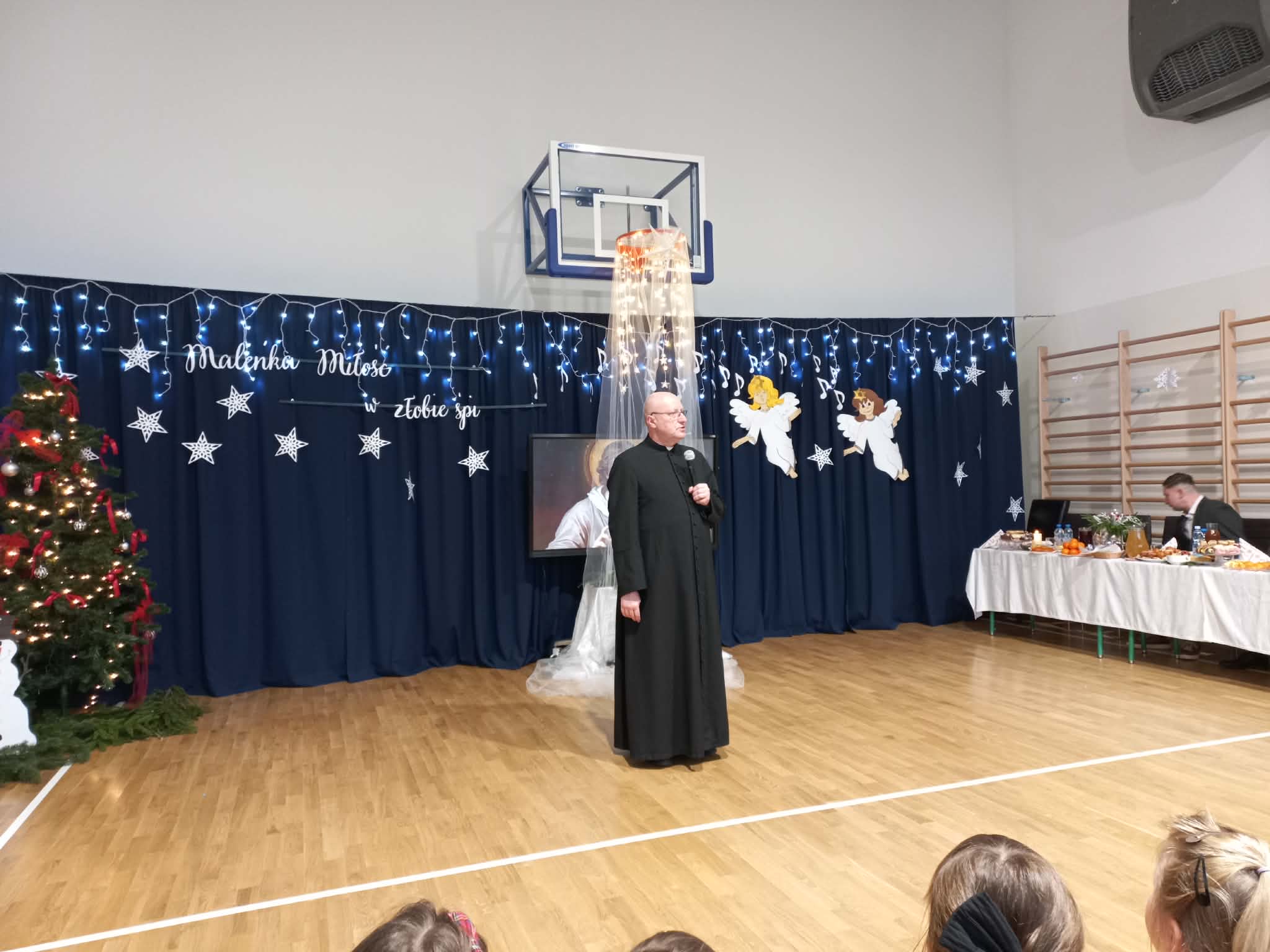 Na zakończenie głos zabrał Dyrektor Zespołu Szkolno-Przedszkolnego w Hołubli, Pan Maciej Tomaszewski, który podziękował wszystkim za zaangażowanie w przygotowanie uroczystości oraz złożył świąteczne życzenia uczniom, rodzicom, nauczycielom, pracownikom szkoły oraz zaproszonym gościom, życząc zdrowych, spokojnych i pełnych radości Świąt Bożego Narodzenia oraz pomyślności w nadchodzącym Nowym Roku.