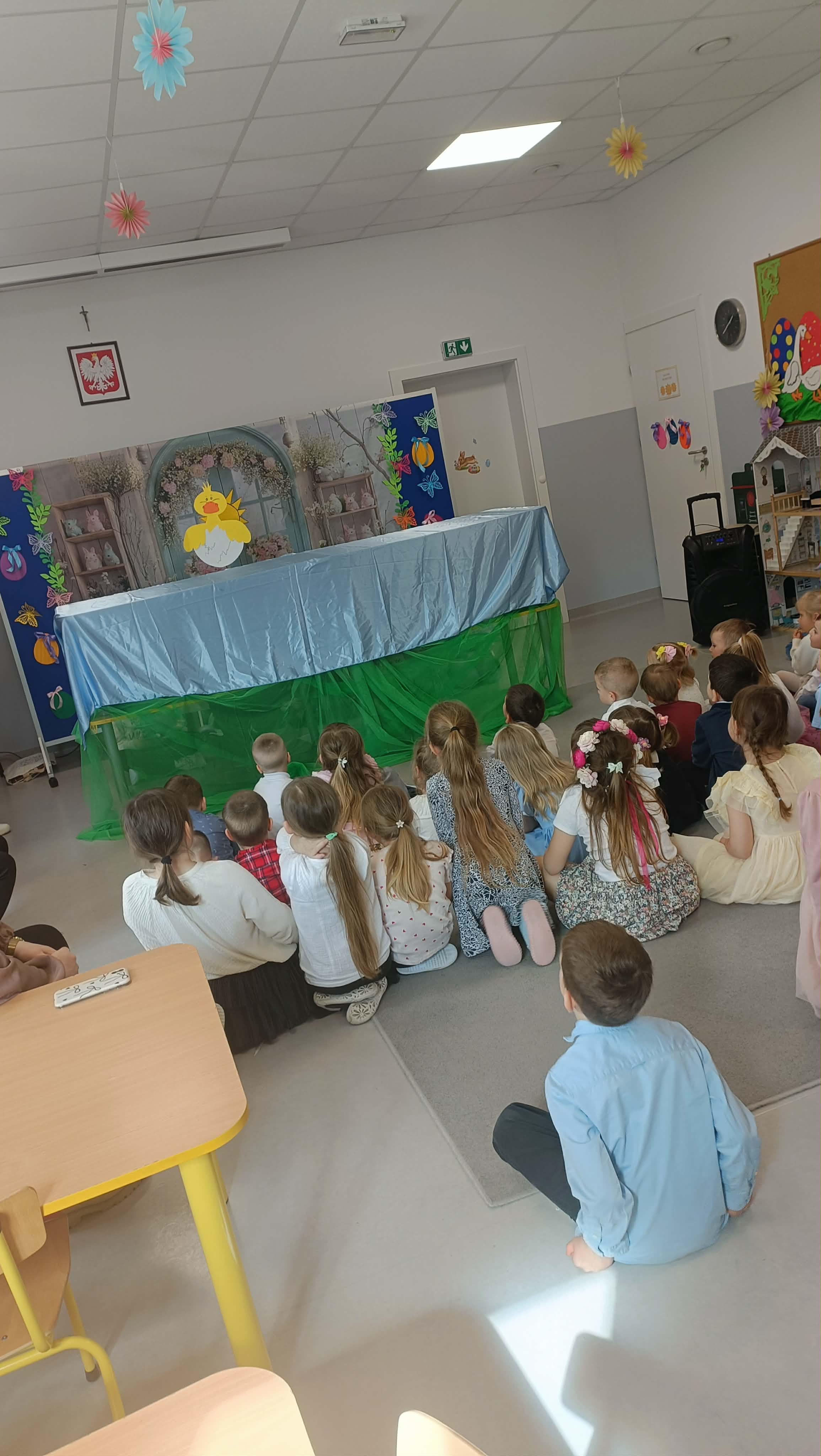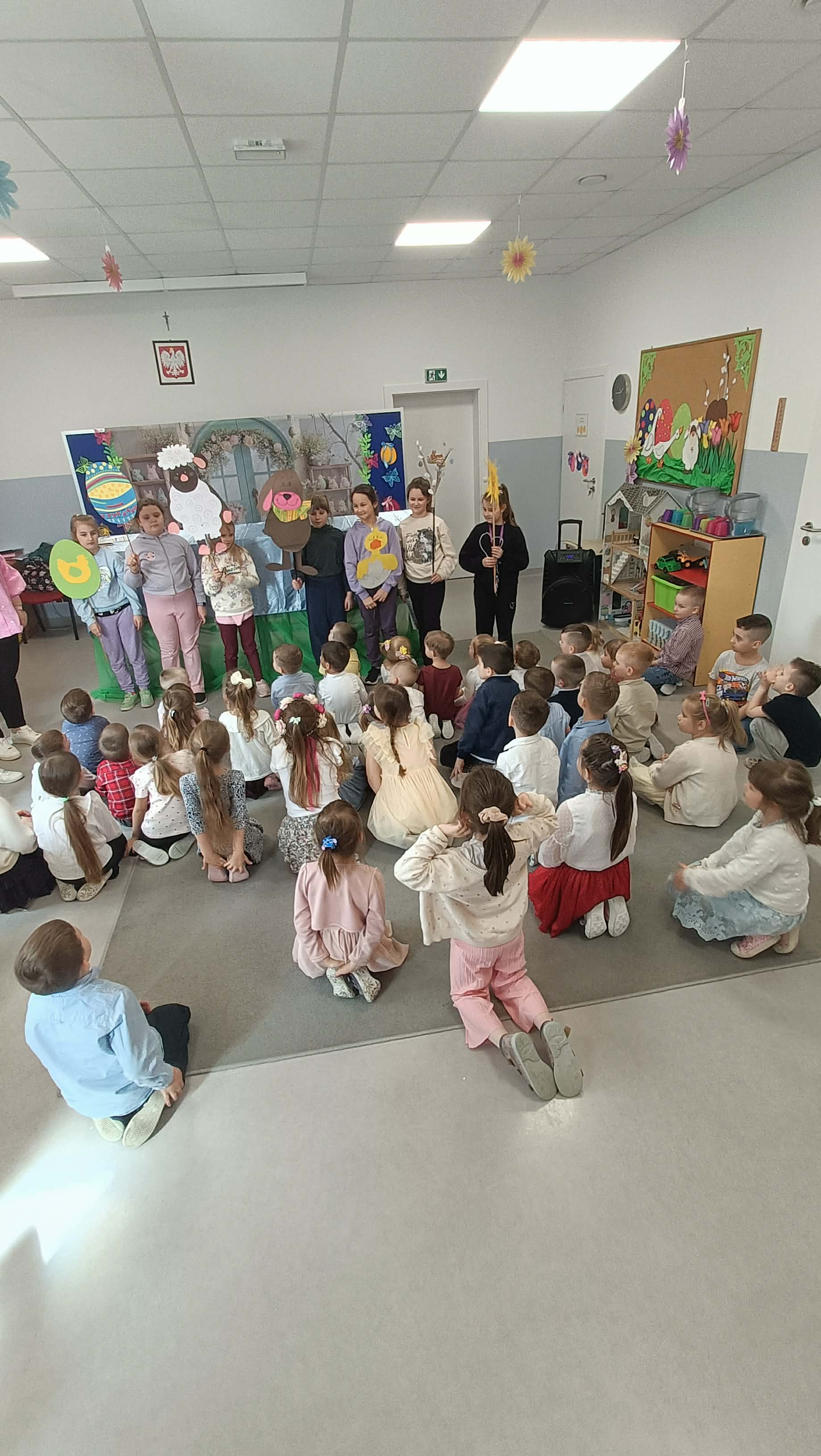 W środe ( 01.04.2026r.) Szkolny Klub Wolontariatu przygotował niezwykłe wydarzenie artystyczne. Uczennice wystawiły w przedszkolu spektakl oparty na motywach ,,Bajeczki wielkanocnej" autorstwa Agnieszki Galicy ( znanej również jako bajka o tym, jak budziła się Wielkanoc). Przedstawienie opowiadało wzruszającą i pouczającą historię o budzącej się do życia Wielkanocy. Przedszkolaki mogły śledzić losy zwierzątek, które z wielkim zaangażowaniem pomagały w przygotowaniach do świąt, budząc wiosnę i radosną atmosferę. Wolontariuszki włożyły w to przedsięwzięcie mnóstwo serca. Magia teatru zadziałała bezbłędnie- w sali panowała cisza przerywana jedynie śmiechem i gromkimi brawami na zakończenie. Dziękujemy uczennicom z Klubu Wolontariatu za ich zaangażowanie, kreatywność i bezinteresowną chęć sprawienia radości młodszym kolegom. To była prawdziwa, wiosenna lekcja empatii i współpracy!