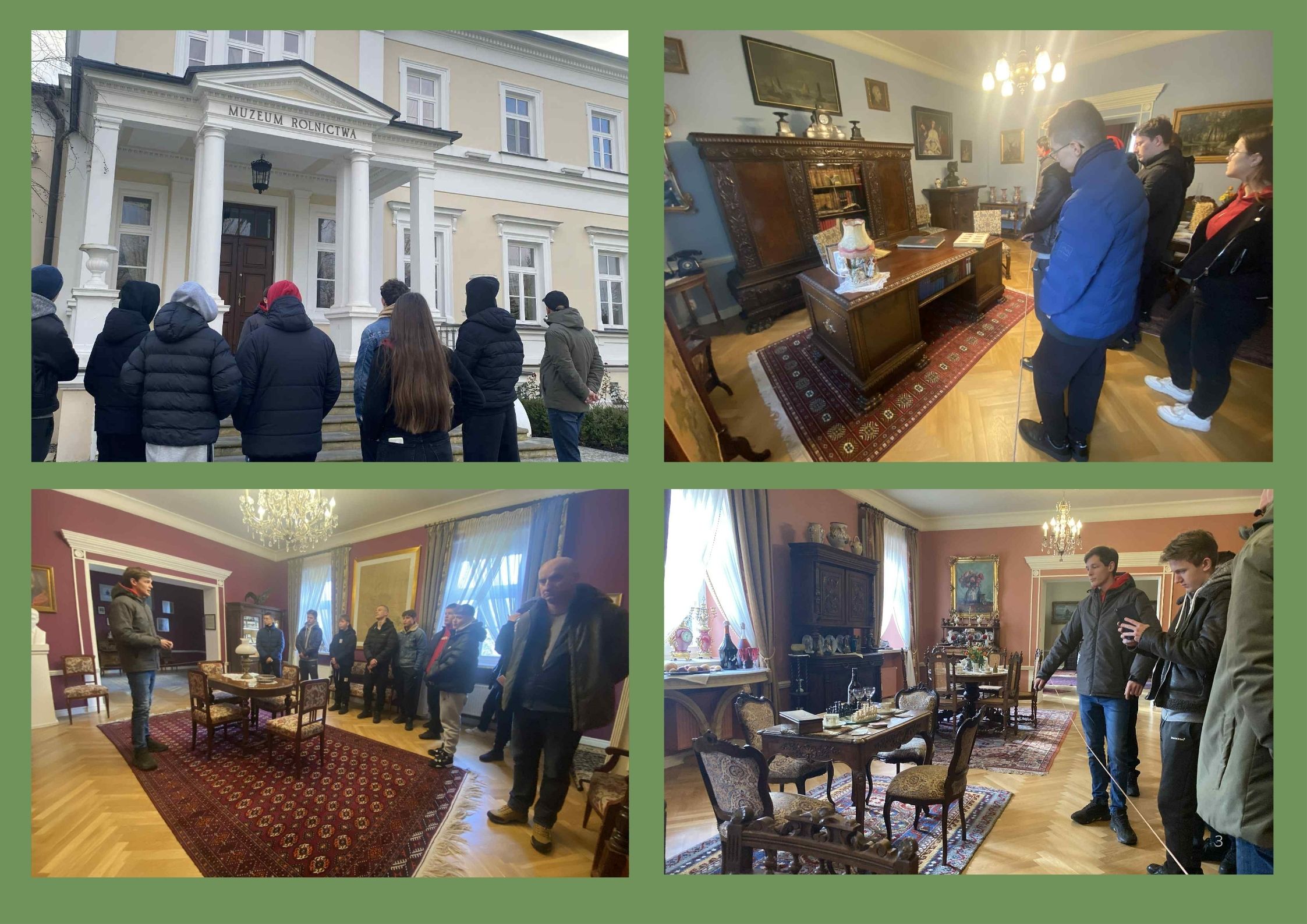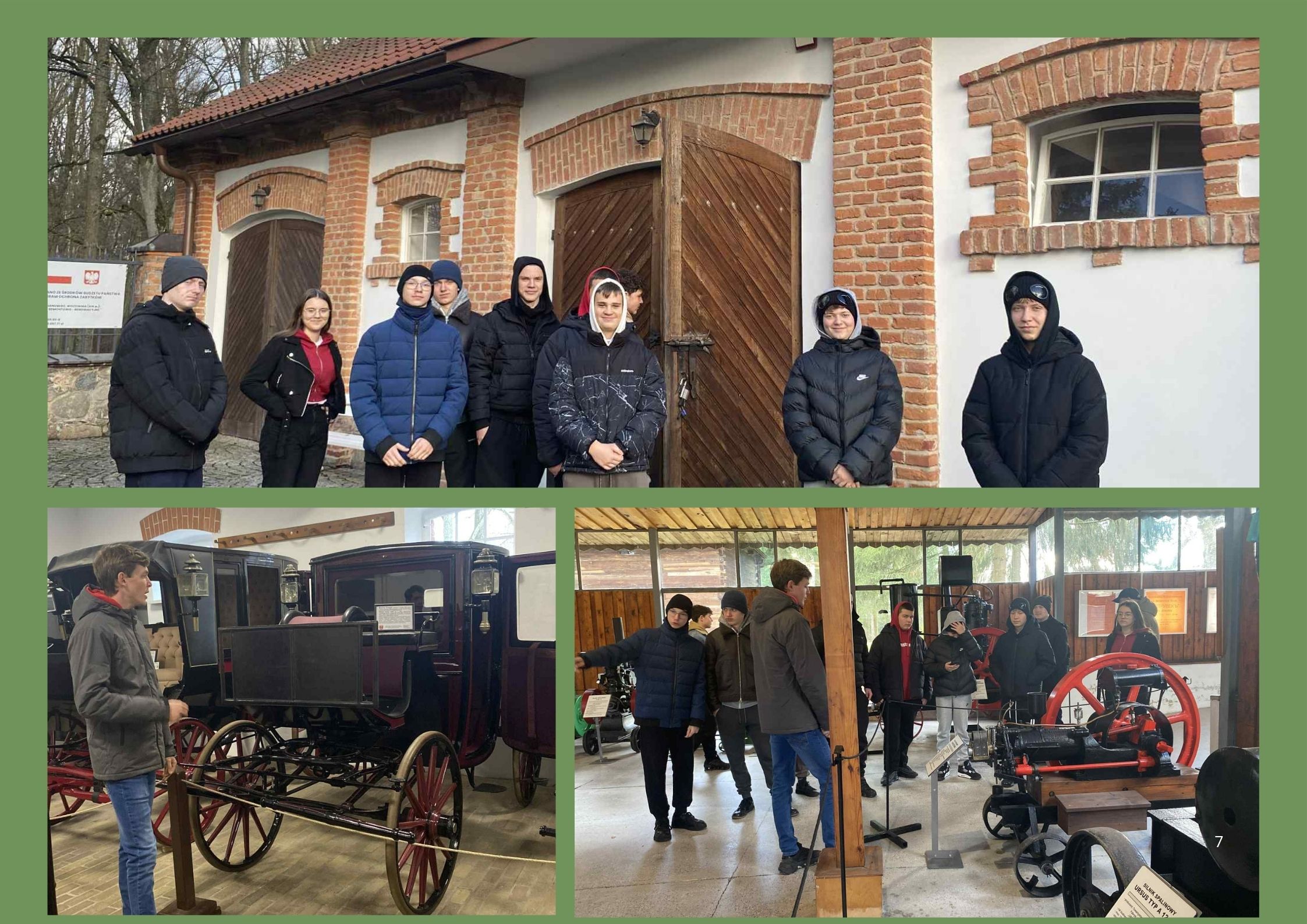 Listopad w pełni, lecz jesienna aura nie zniechęciła klasy 8, która we wtorek 18 listopada pod przewodnictwem Pana Karola Trocia wybrała się do jednego z najstarszych miast w Polsce Wschodniej - Ciechanowca. Zwiedzanie rozpoczeliśmy od Muzeum Rolnictwa im. ks. Krzysztofa Kluka, które znajduje się w zespole pałacowo-parkowym będącym niegdyś siedzibą rodu Starzeńskich. Przewodnik muzealny przedstwił nam ekspozycję wnętrz w XIX-wiecznym pałacu: gabinet hrabiego, jadalnię i sypialnię hrabiny, następnie zaprezentował usytuowane w dziewiętnastowiecznej powozowni dawne środki transportu. Wśród zabytkowych powozów konnych i pojazdów zaprzęgowych na uwagę zasługują karety coupé - luksusowe pojazdy wyjazdowe i powóz milord. Na ekspozycji nie zabrakło przykładów sań czy wozów gospodarskich np. bryczek i wasągów. Oprócz wozów zaprzęgowych prezentowane są uprzęże podlaskie, krakowskie, angielskie oraz janczary. Na terenie parku etnograficznego mieści się również m.in. Muzeum Weterynarii, Muzeum Pisanki, a także skansen budownictwa wiejskiego (w którym mieszkają zwierzęta gospodarskie takie jak: kury, gęsi, kozy, owce, konie, osły). Z wielkim zachwytem i fascynacją podziwialiśmy wystawę maszyn parowych i ciągników rolniczych zarówno polskich i zagranicznych producentów. Najstarsze maszyny pochodzą z konća XIX wieku, a najmłodsze z początku lat 90. XX wieku. Bogata ekspozycja zaprezentowała nam m.in. najstraszy ciągnik wyprodukowany w Polsce, np. Titan i Ford F, czy eksportową wersję ciągnika Porche. Te unikalne zabytki techniki rolniczej i transportu wiejskiego cieszyły się ogromnym zainteresowaniem, jednak największe zdobył ciągnik marki Ursus! Kolejną atrakcją naszej wycieczki była siedmiopiętrowa, wysoka na ponad 20 metrów wieża widokowa, gdzie po pokonaniu około stu schodów podziwialiśmy panoramę całego miasta. Po aktywnym przedpołudniu udaliśmy się na zasłużony obiad, który wszystkim bardzo smakował. Ostatnim etapem naszej wycieczki było towarzyskie spotkanie z uczniami klasy 8 Szkoły Podstawowej im. Mikołaja Kopernika, z którymi rozegraliśmy sparing siatkówki - dziękujemy za mecz w miłej atmosferze! Ciechanowiec okazał się doskonałym pomysłem na wycieczkę!