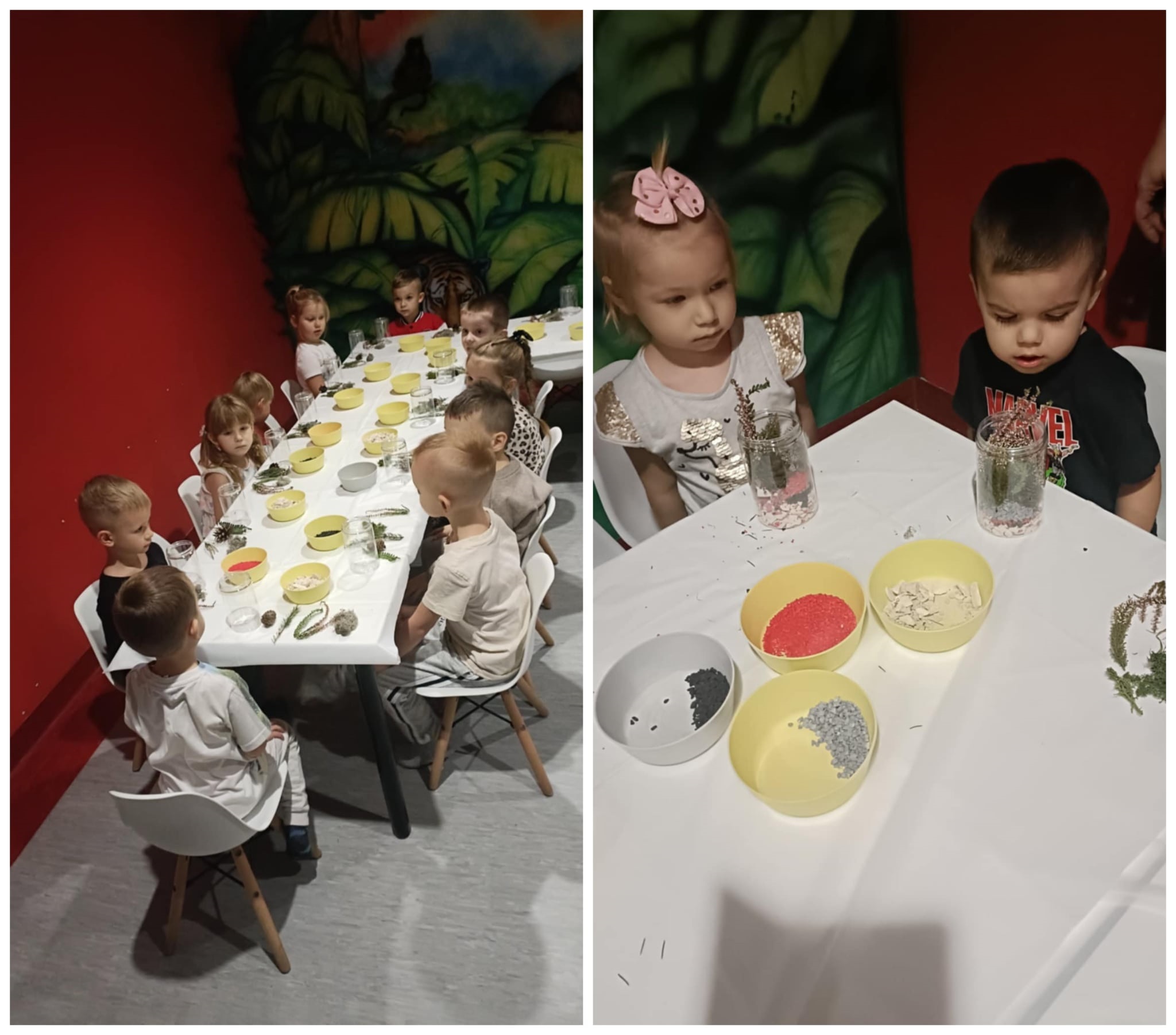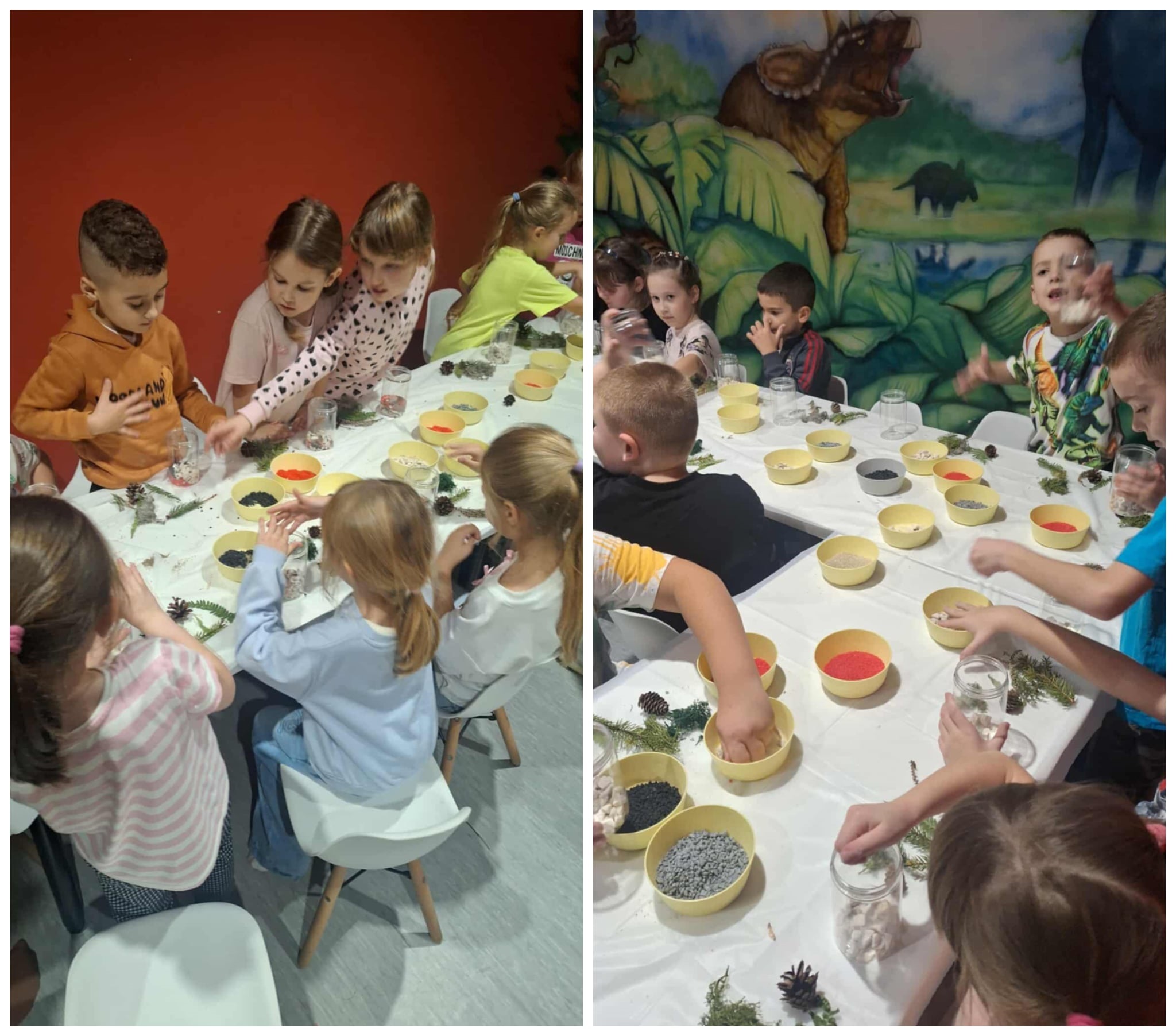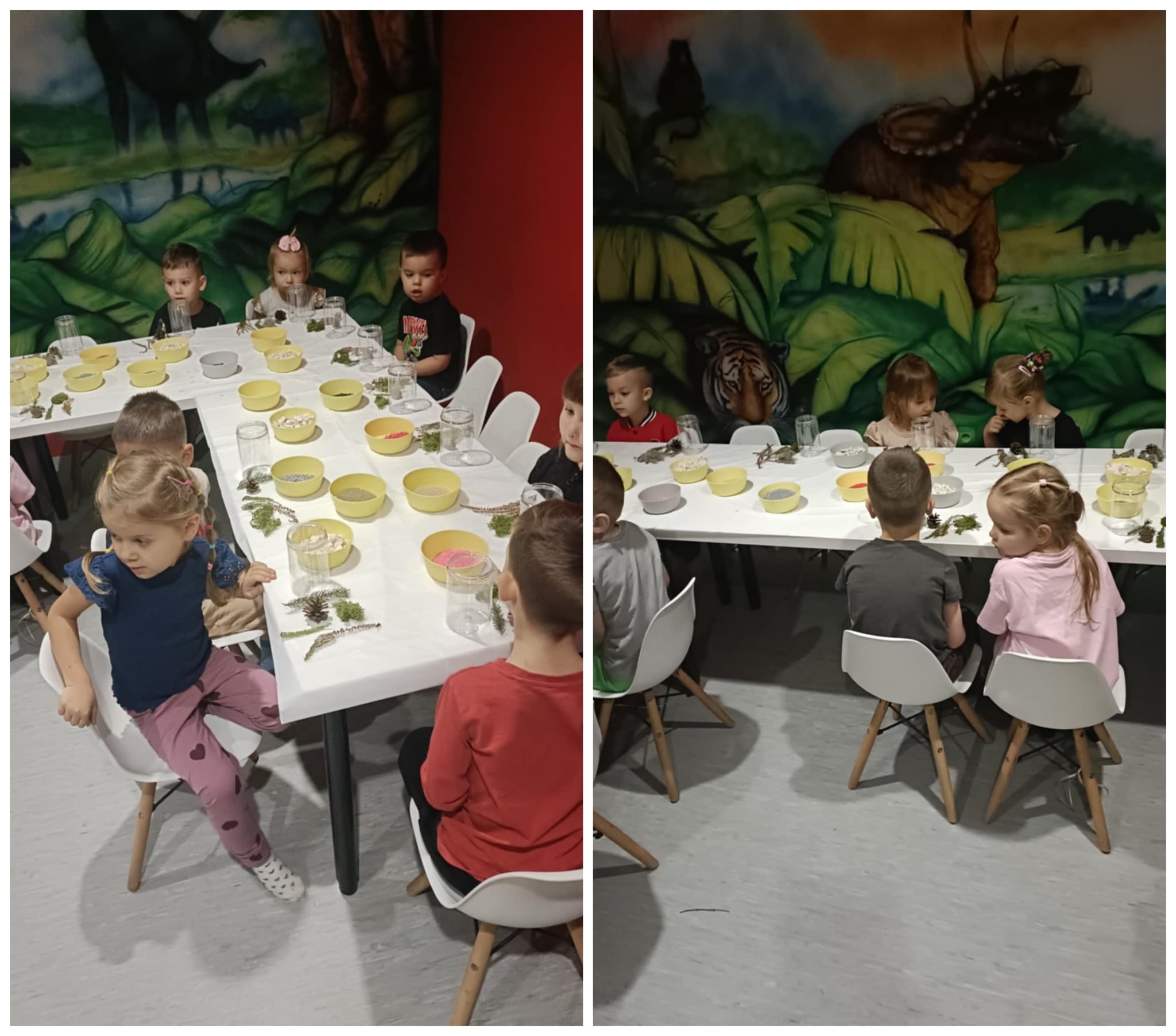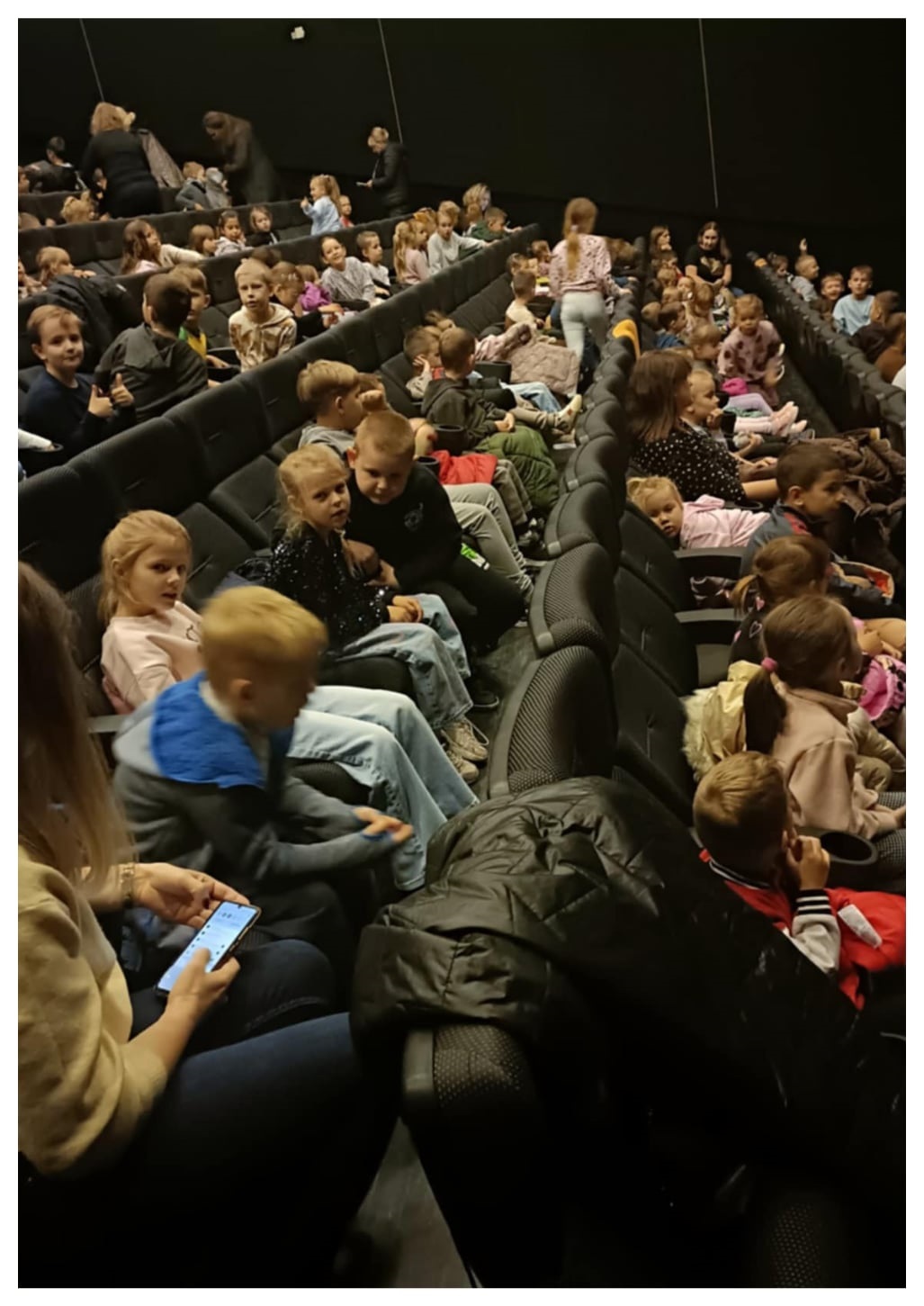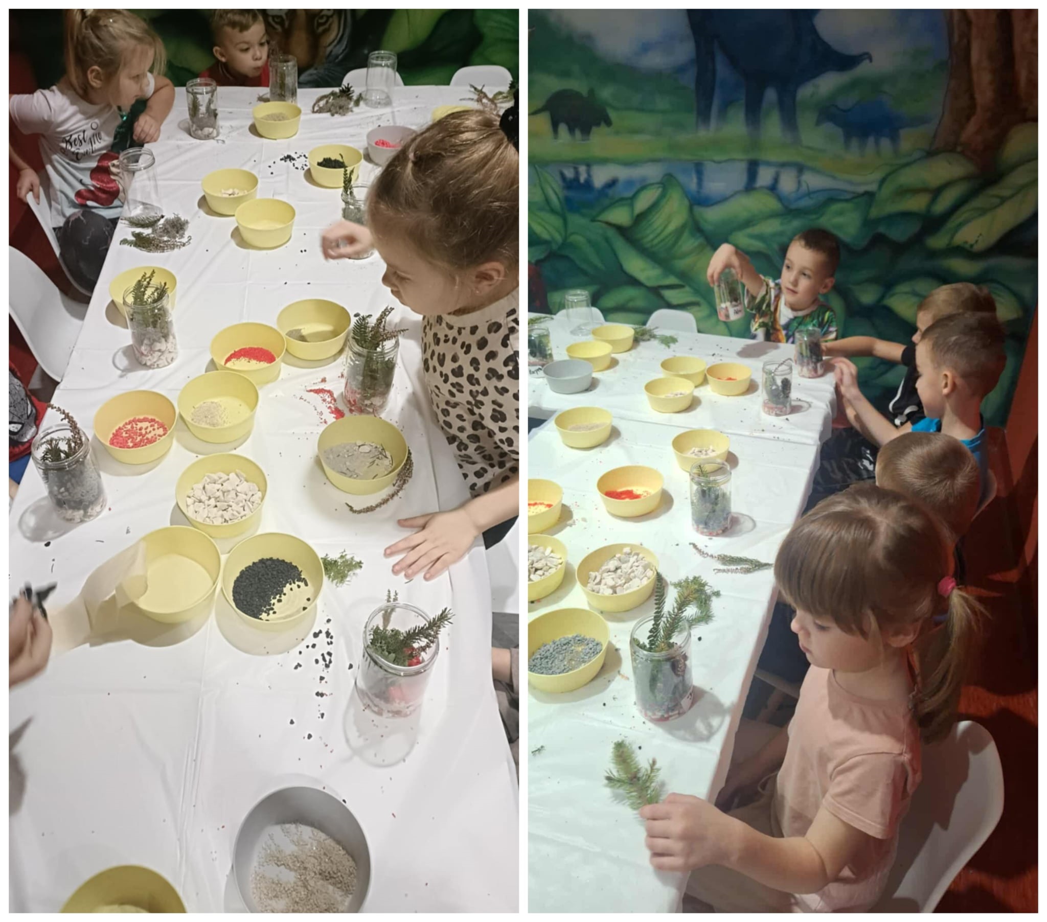 Dnia 28.10.2025r. przedszkolaki wybrały się na wycieczkę do Siedlec. Na początku dzieci spędziły czas w NoveKino Siedlce, gdzie z wielką uwagą i zaciekawieniem oglądały spektakl teatralny Śnieżka. Następnie dzieci wybrały się na krótki jesienny spacer po parku. Kolejnym punktem wycieczki była zabawa w sali KidsParadise, gdzie miło spędziły czas. Na sali dzieci wzięły także udział w warsztatach Las w słoiku. Wycieczkę zakończyliśmy zjedzeniem pysznej pizzy. Podczas całej wycieczki każdemu dziecku towarzyszył uśmiech na twarzy.