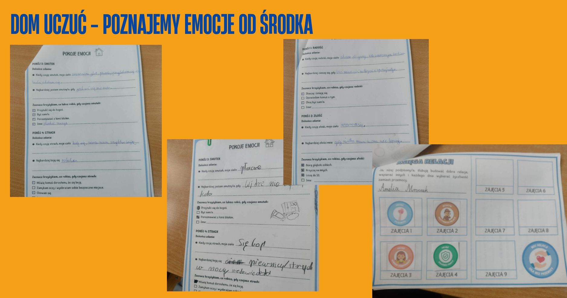 Na wstępie uczniowie otrzymali zadanie, które polegało na wyobrażeniu sobie z zamkniętymi oczami domu swoich uczuć. Spacerowali po pokojach sprawdzając jaka emocja zamieszkała w salonie a jaka w sypialni?